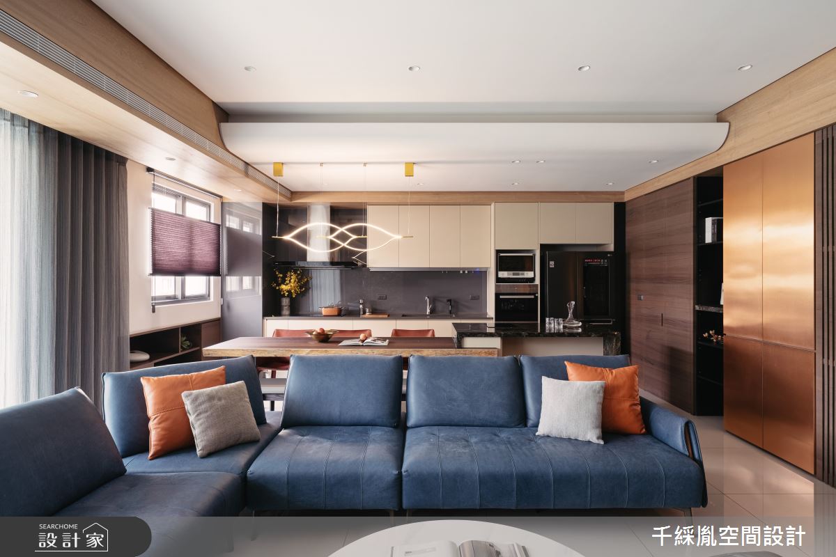 來自千綵胤空間設計的80坪現代風住宅案,屋主一家人共有2位大人、2位小孩,是一間複層新成屋(5年以下)的四房格局,設計師藉由建材以乳膠漆、超耐磨木地板、鍍鈦金屬、木作貼皮、鋼刷木皮、系統板材、石材的搭配應用,實現一家人的理想生活。