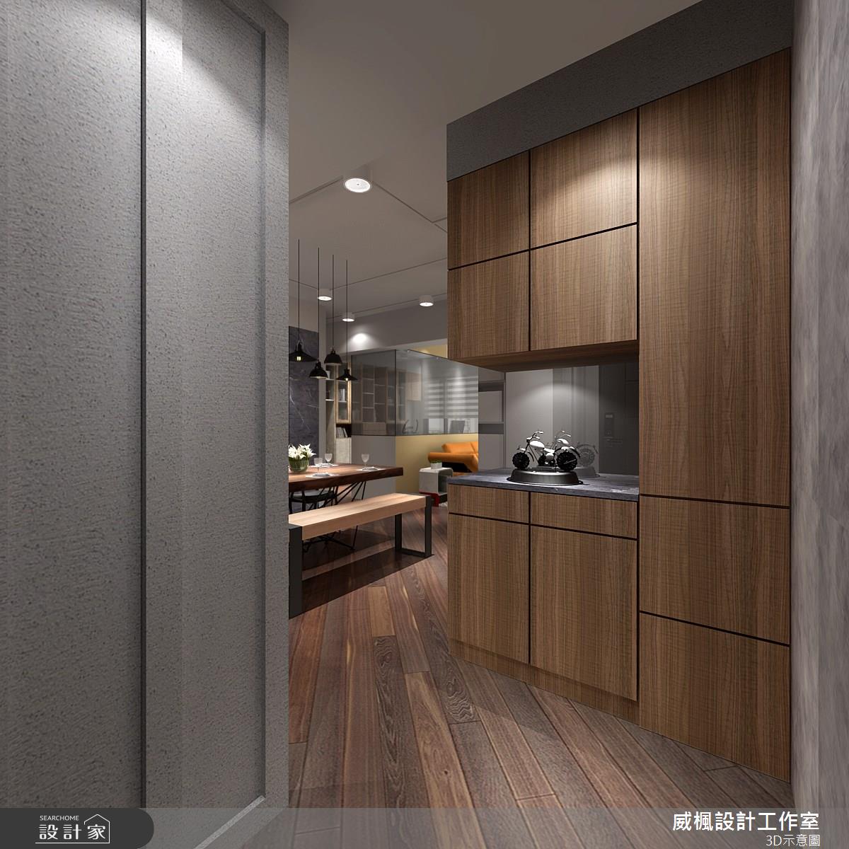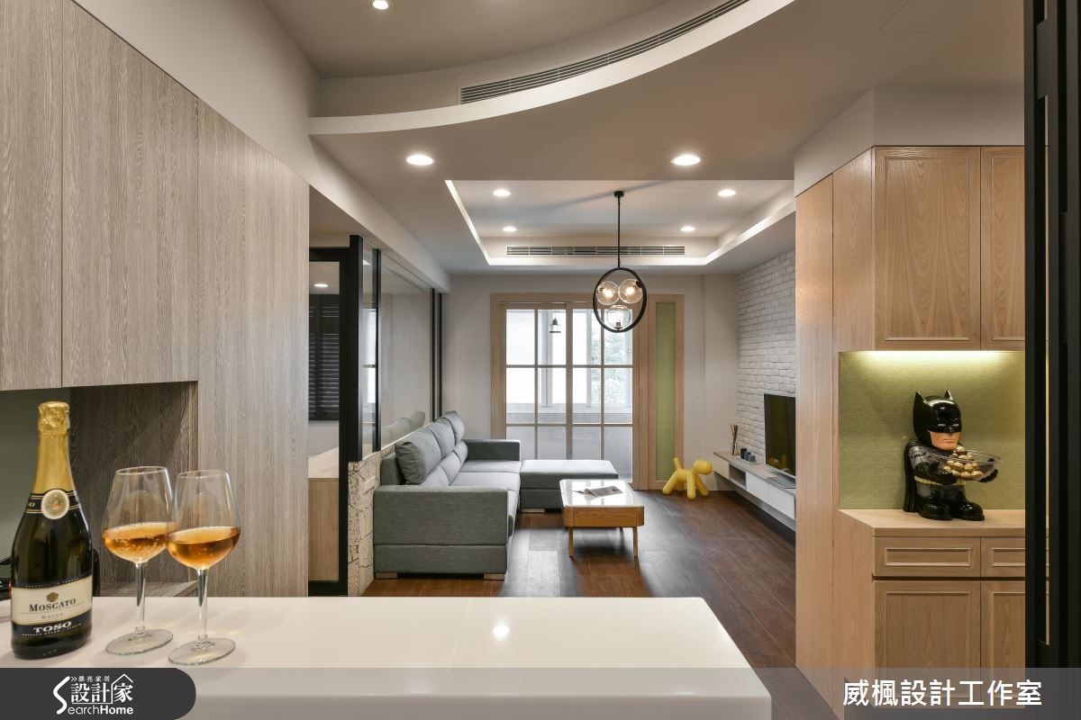 由威楓設計精心規劃的20坪兩房住宅空間,家庭成員一共有2位大人。因應屋主需求,設計師運用侘寂風作為主軸,搭配礦物塗料、木作、木皮、木地板、玻璃、灰玻、大板磚,打造全家人的夢想家居。