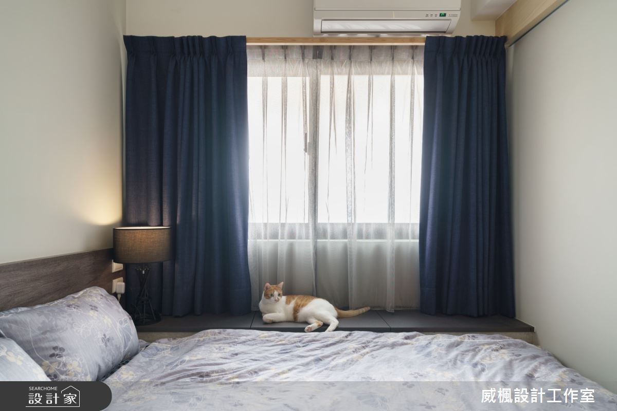 家是為了家人而設計,這一家五口有夫妻與兩位小朋友,以及一隻可愛的貓咪!在老屋翻新的過程中,以「舒適生活」為本體選擇建材與色系,大量的木皮材質構築的清新空間,帶給每一位家庭成員最完美的生活體驗。 雖然是16年以上的老屋但格局方正且採光良好,因此設計師在規劃空間時放棄在玄關做出隔屏,而是讓客廳採光能照耀到門口。不怕貓咪亂抓,大膽地使用木地板與栓木皮形塑空間氛圍,透過不同木色的層次與紋理取代居家裝飾品,讓客廳區域沒有多餘贅飾阻礙貓咪與孩子的活動空間。在書房設計上與陽台結合,鵝黃與亮橘色乳膠漆代表著活力,於外將常見的窗邊臥榻改造成貓跳台與貓窩,堆疊的櫃體也可以當成家人的陽光吧台;書房與陽台的隔間上半部玻璃設計,讓家人與貓咪即便在不同區域也能像是同在一起。 不見老屋歲約的痕跡,改造後的浴室雖然地坪不大,但是依然保持乾濕分離的設計,不因坪數而犧牲掉該有的生活品質。主臥房則以篇灰質的木皮與系統櫃打造安定沈靜的休憩空間,兩個小孩房則用水藍色搭配系統收納,賦予每位家人俱有歸屬感的生活空間。 小編的最愛 是書房還是貓房?其實不用分得這麼清楚!重新界定封閉與開放的概念,利用透明玻璃與矮牆打造一個視覺上通透、機能上能獨立亦能相通的格局設計。家人的用心設計,毛小孩一定能感受到。