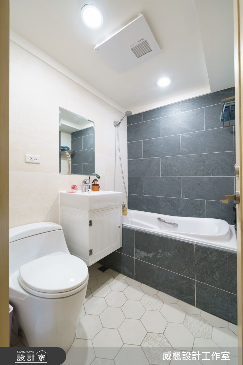 威楓設計工作室以油漆、壁紙、木地板、木作貼皮、系統板材、大理石、磁磚、賽麗石、石材、繃布、線板、噴漆、乳膠漆、金屬漆、實木地板、塗料、大板磚的搭配應用,呈現法式復古風居家氛圍,將此間13坪、兩房、單層、新成屋(5年以下)打造成舒適愜意的家庭空間,完成2位大人全家人的夢想之居。