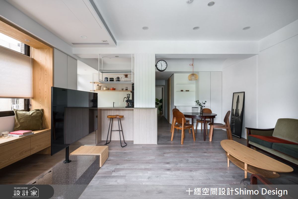 由十纆室內裝修設計有限公司精心規劃的28坪兩房住宅空間,家庭成員一共有2位大人。因應屋主需求,設計師運用混搭風作為主軸,搭配乳膠漆、超耐磨木地板、鐵件、烤玻、木作貼皮、系統板材、繃布、水磨石、掀床、拉伸桌,打造全家人的夢想家居。