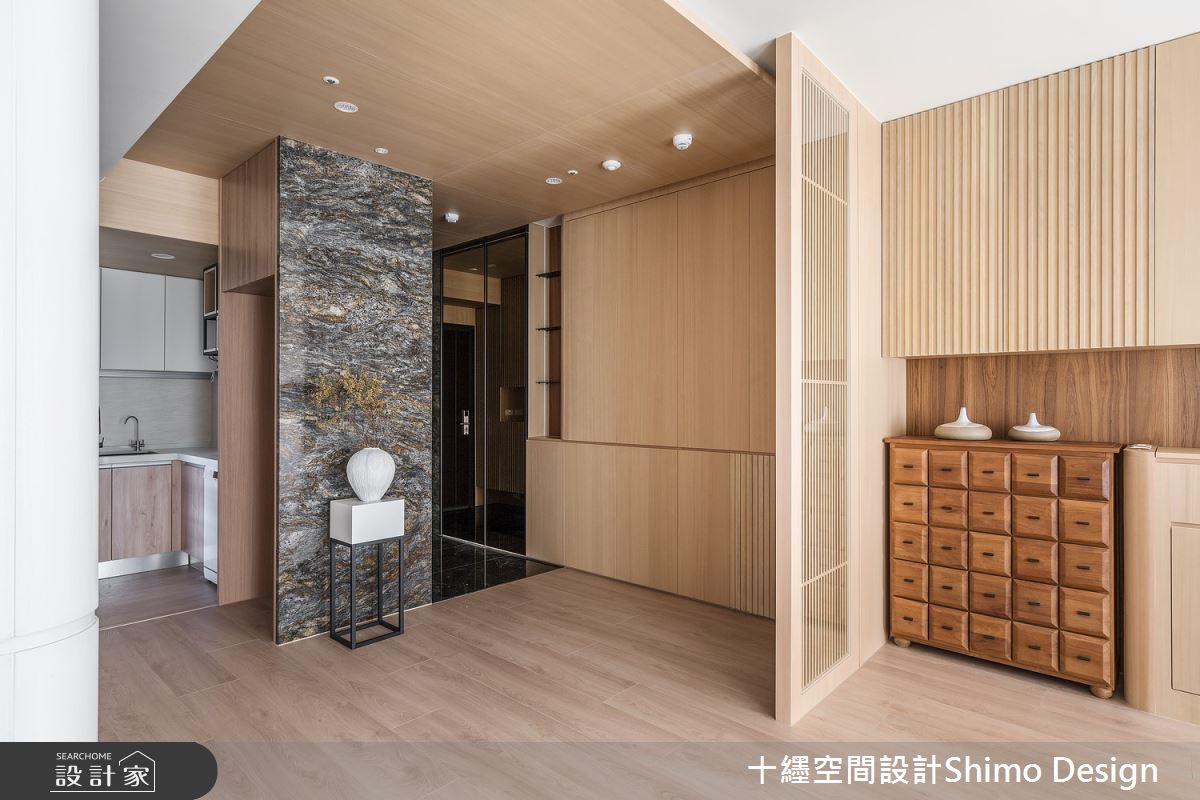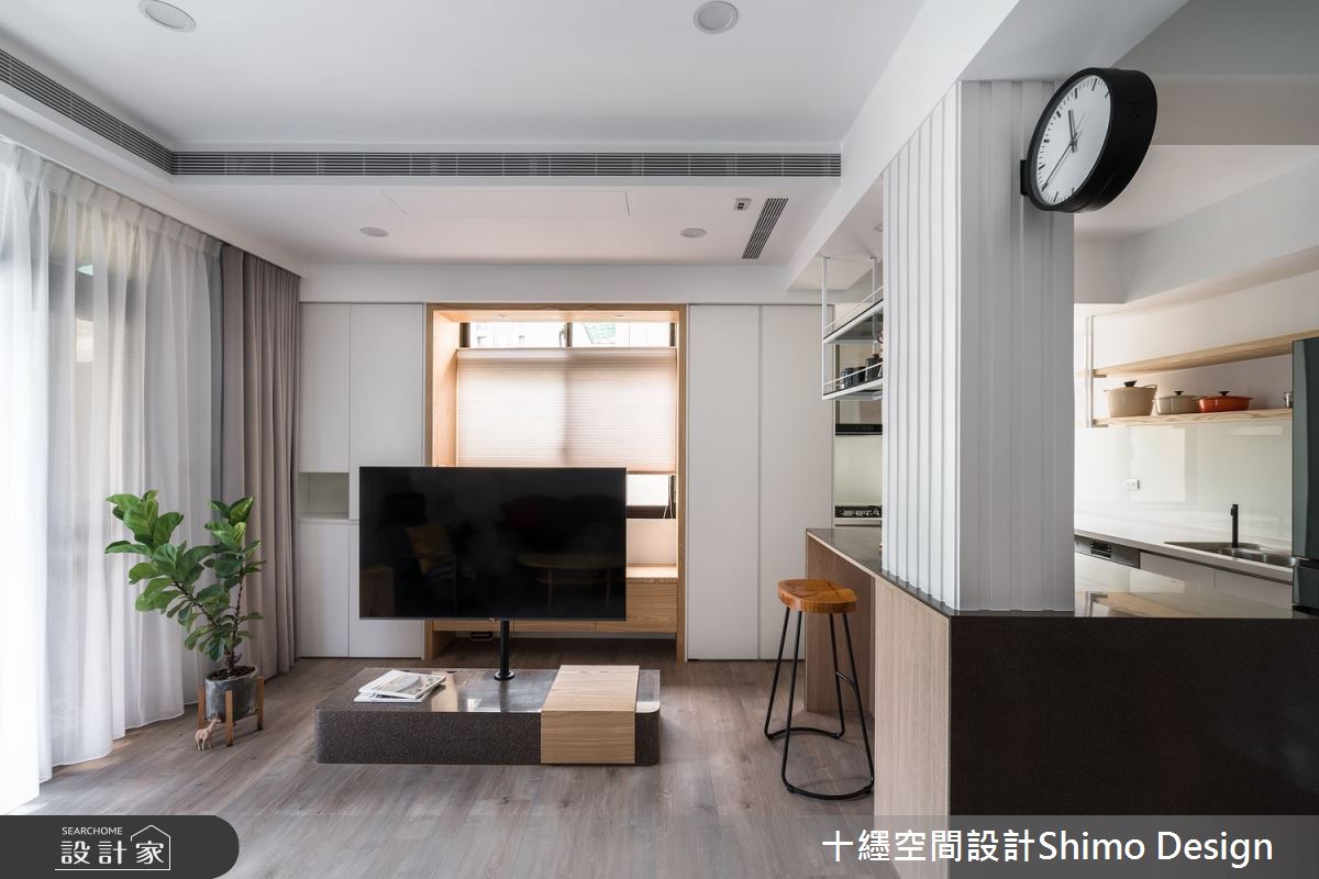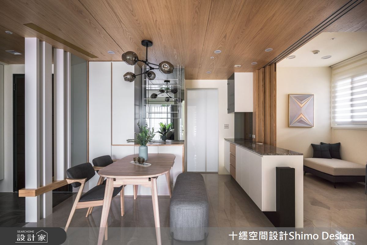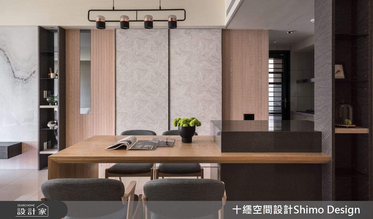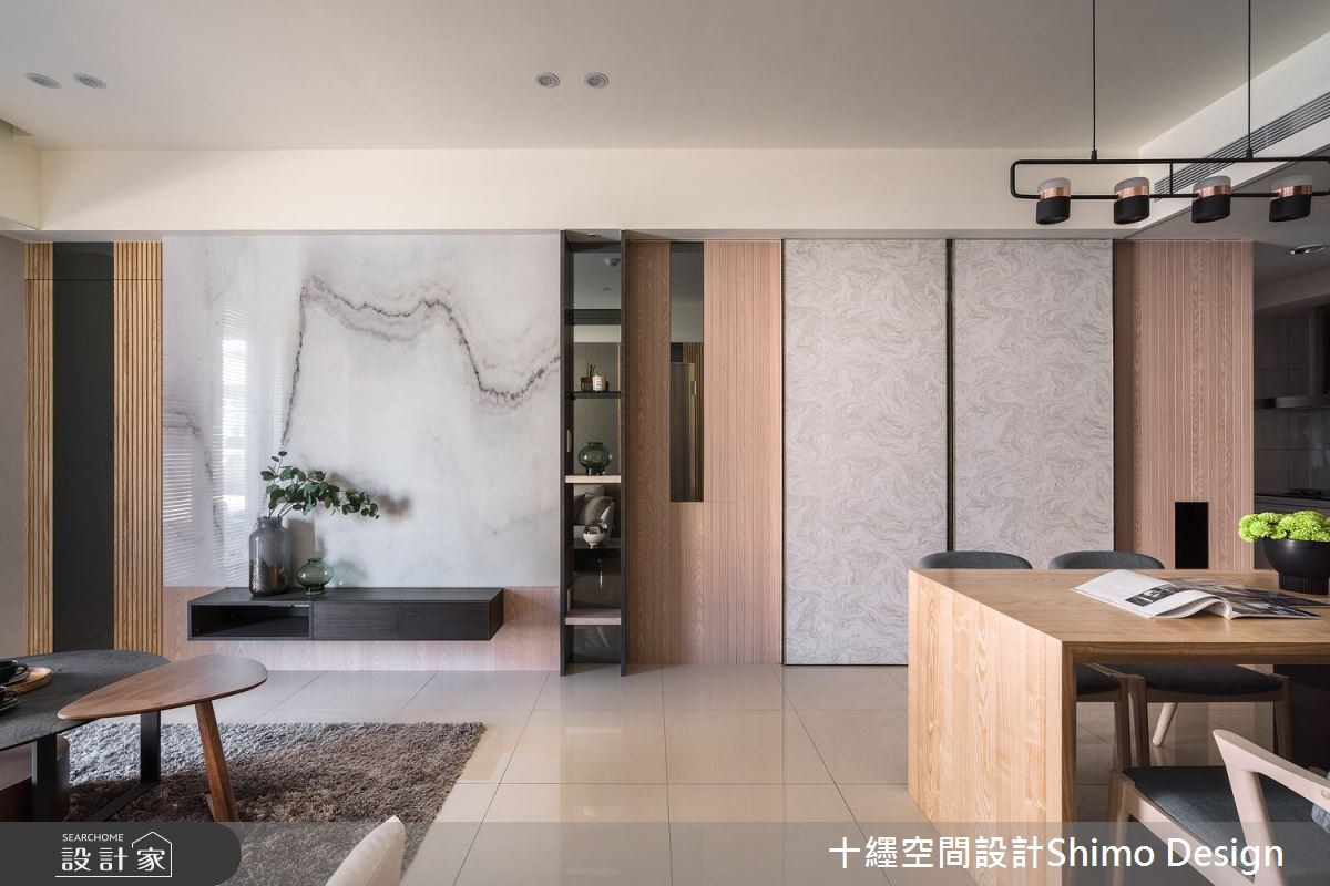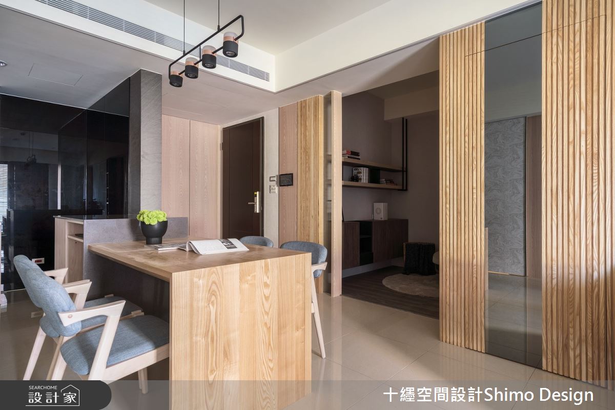 由十纆室內裝修設計有限公司精心規劃的38坪三房住宅空間,家庭成員一共有2位大人、2位長輩。因應屋主需求,設計師運用混搭風作為主軸,搭配乳膠漆、超耐磨木地板、木作貼皮、鋼刷木皮、木百葉、皮革、繃布、障子門,打造全家人的夢想家居。