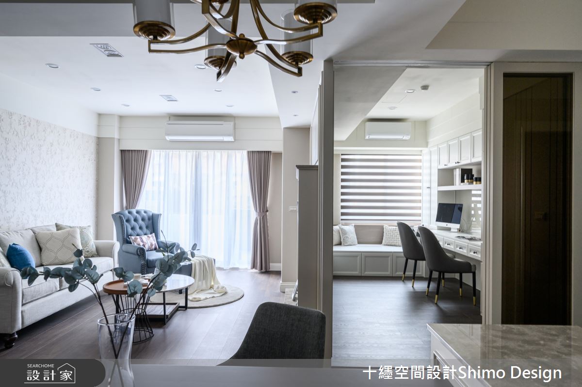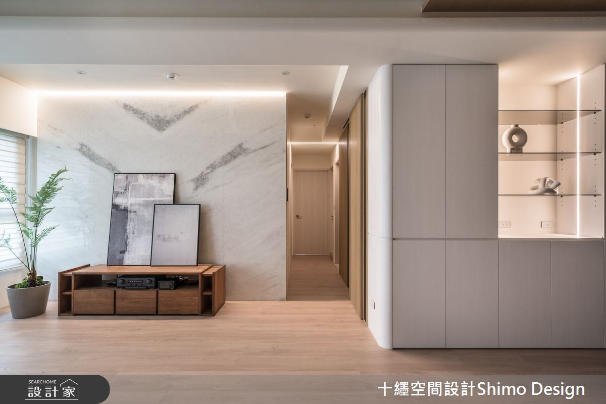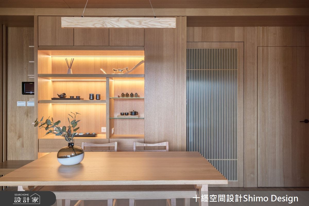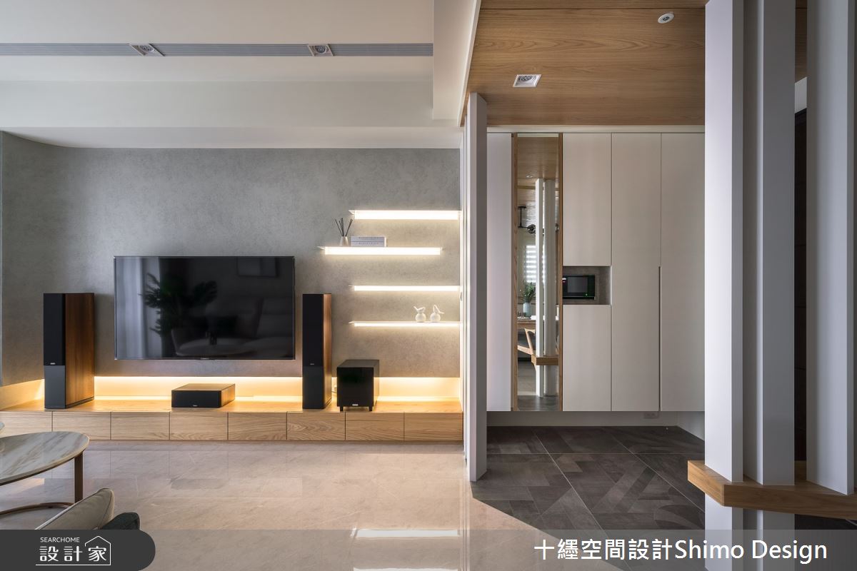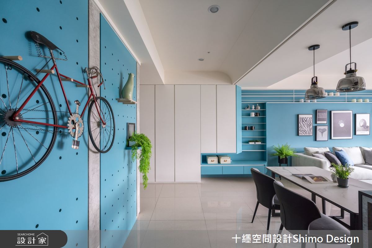 由十纆室內裝修設計有限公司精心規劃的38坪三房住宅空間,家庭成員一共有2位大人、2位長輩。因應屋主需求,設計師運用混搭風作為主軸,搭配乳膠漆、超耐磨木地板、木作貼皮、鋼刷木皮、木百葉、皮革、繃布、障子門,打造全家人的夢想家居。