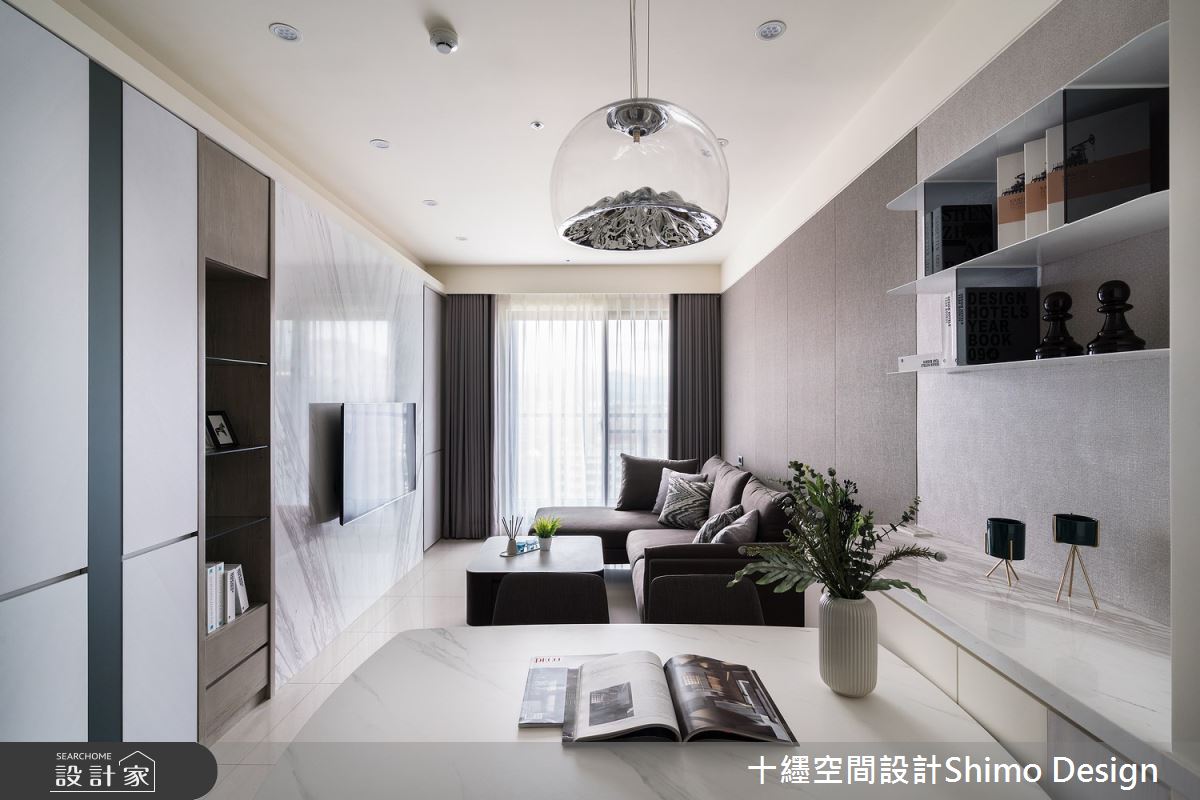 十纆室內裝修設計有限公司以乳膠漆、壁紙、超耐磨木地板、鐵件、木作貼皮、系統板材、大理石、石材、繃布、實木皮的搭配應用,呈現混搭風居家氛圍,將此間31坪、兩房、單層、新成屋(5年以下)打造成舒適愜意的家庭空間,完成2位大人、1位小孩全家人的夢想之居。