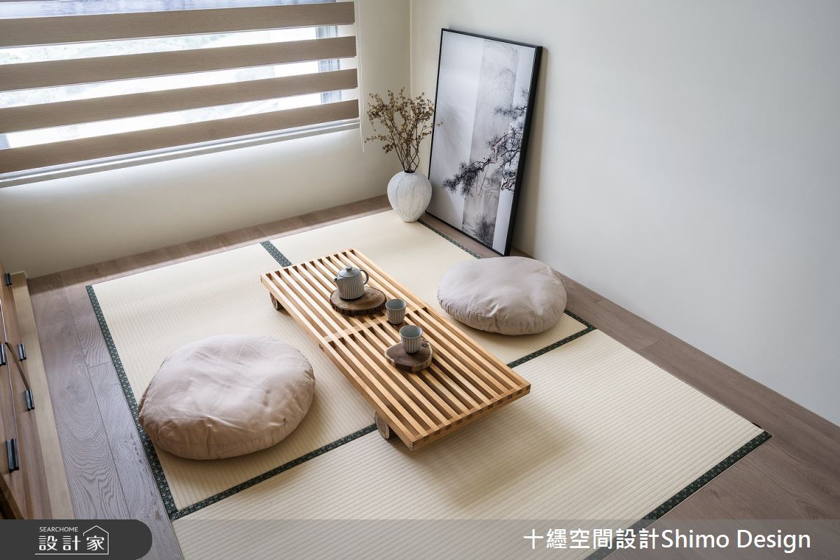 十纆室內裝修設計有限公司以乳膠漆、超耐磨木地板、石英磚/拋光石英磚、榻榻米、鐵件、灰鏡、木作貼皮、烤漆、大理石、石材、線板、障子門、氟酸玻璃的搭配應用,呈現日式無印風居家氛圍,將此間49坪、兩房、單層、預售屋打造成舒適愜意的家庭空間,完成2位大人全家人的夢想之居。