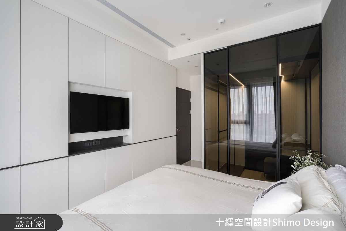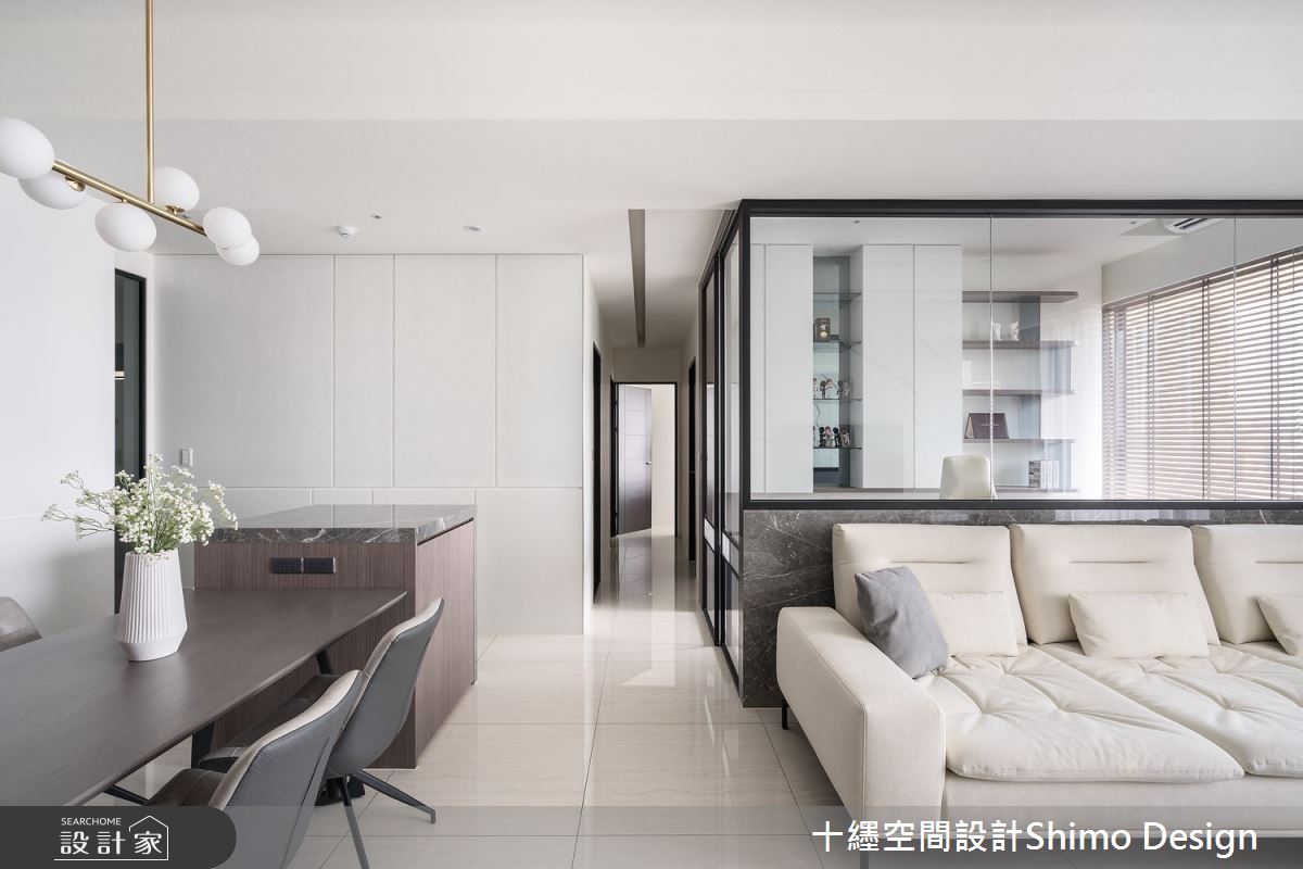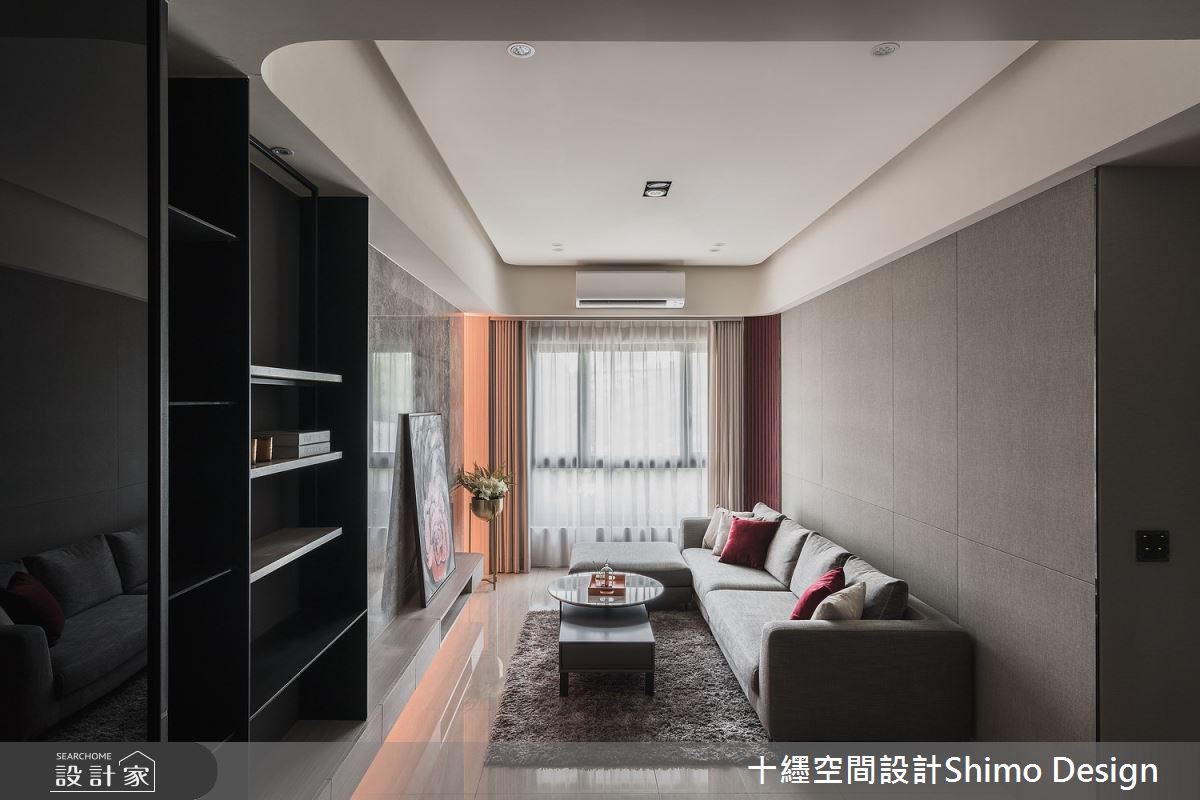由十纆室內裝修設計有限公司精心規劃的49坪四房住宅空間,家庭成員一共有2位大人、1位小孩。因應屋主需求,設計師運用現代風作為主軸,搭配乳膠漆、鐵件、灰鏡、木作貼皮、烤漆、系統板材、大板磚,打造全家人的夢想家居。