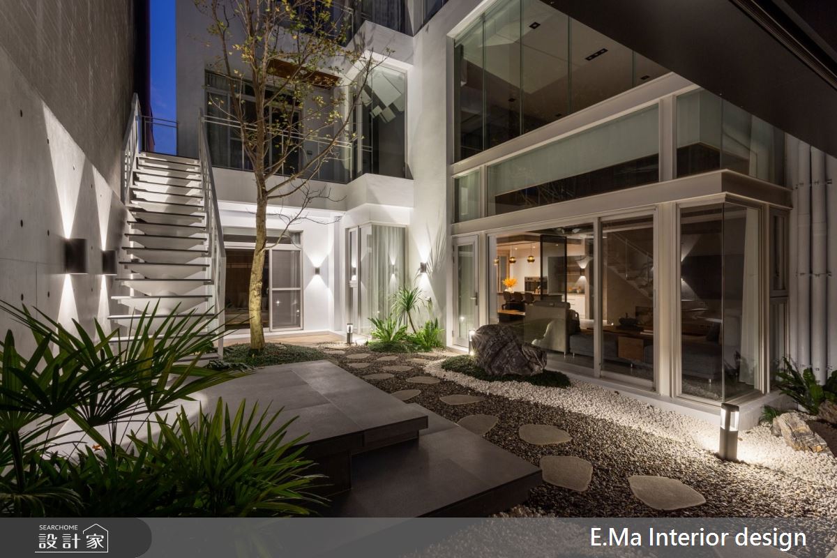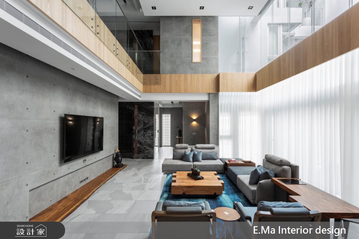 艾馬室內裝修設計以天然大理石、塗料、原木、鐵件、鍍鈦的搭配應用,呈現現代簡約風居家氛圍,將此間140坪、四房、透天別墅、新成屋(5年以下)打造成舒適愜意的家庭空間,完成3位大人全家人的夢想之居。
