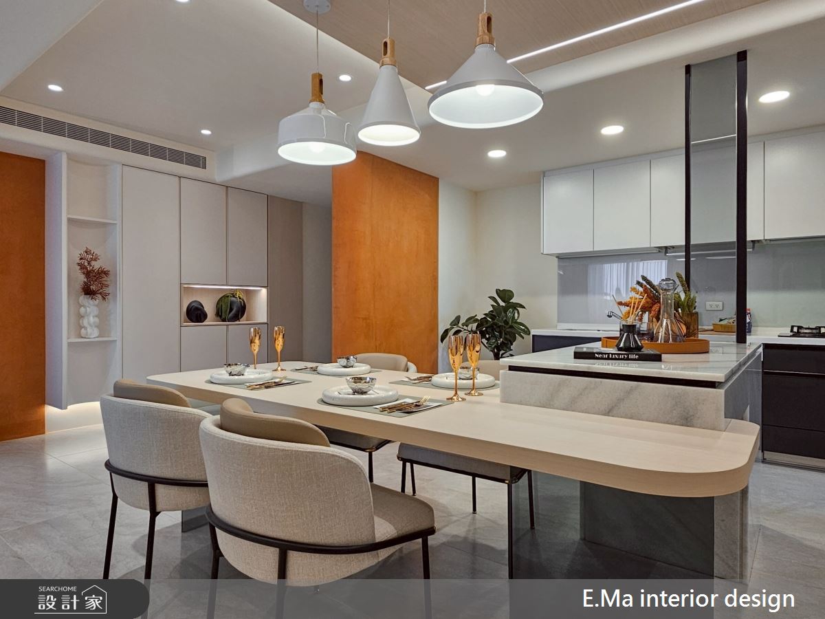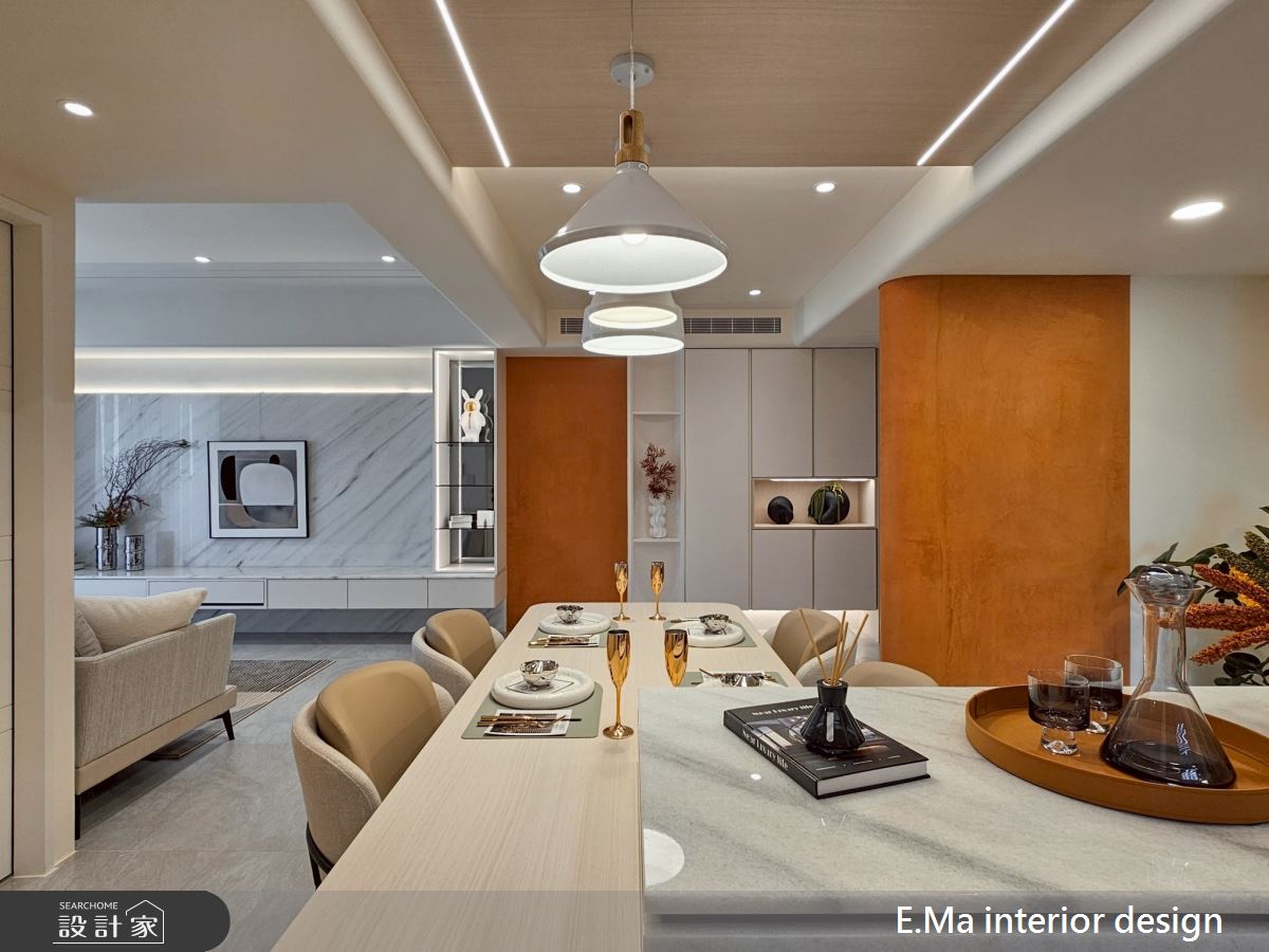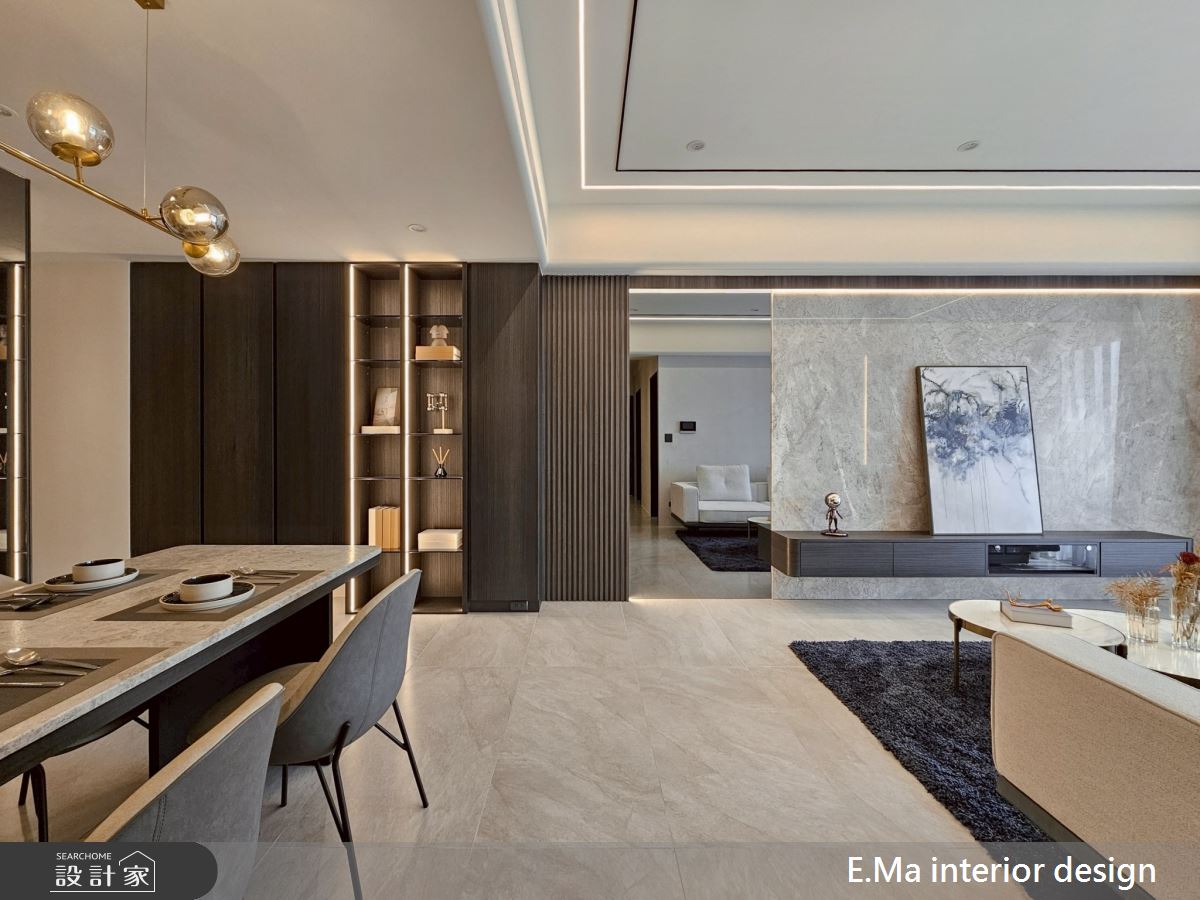 來自艾馬室內裝修設計的51坪混搭風住宅案,屋主一家人共有2位大人,是一間單層新成屋(5年以下)的三房格局,設計師藉由建材以天然石材、義大利塗料、鍍鈦、琉璃金、水精靈的搭配應用,實現一家人的理想生活。