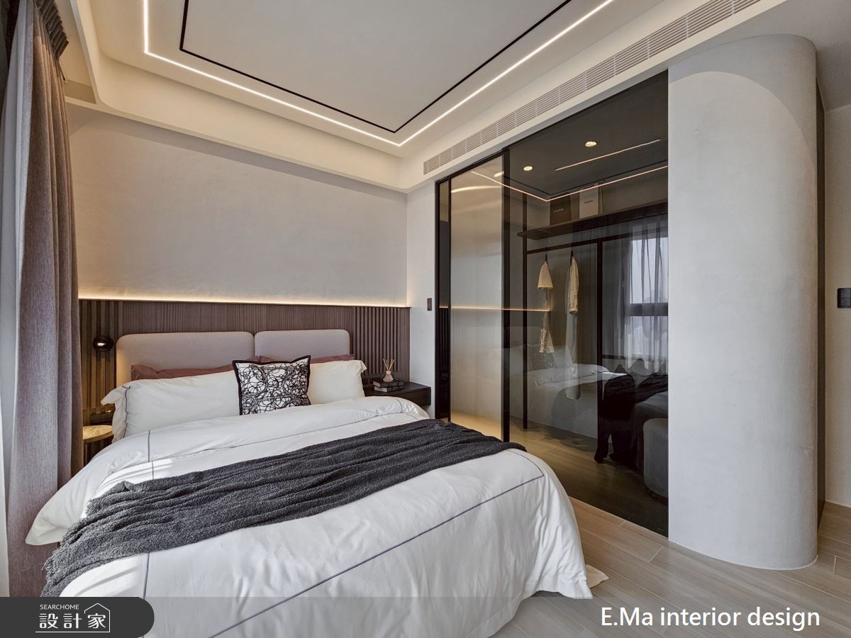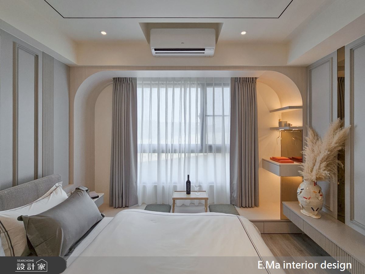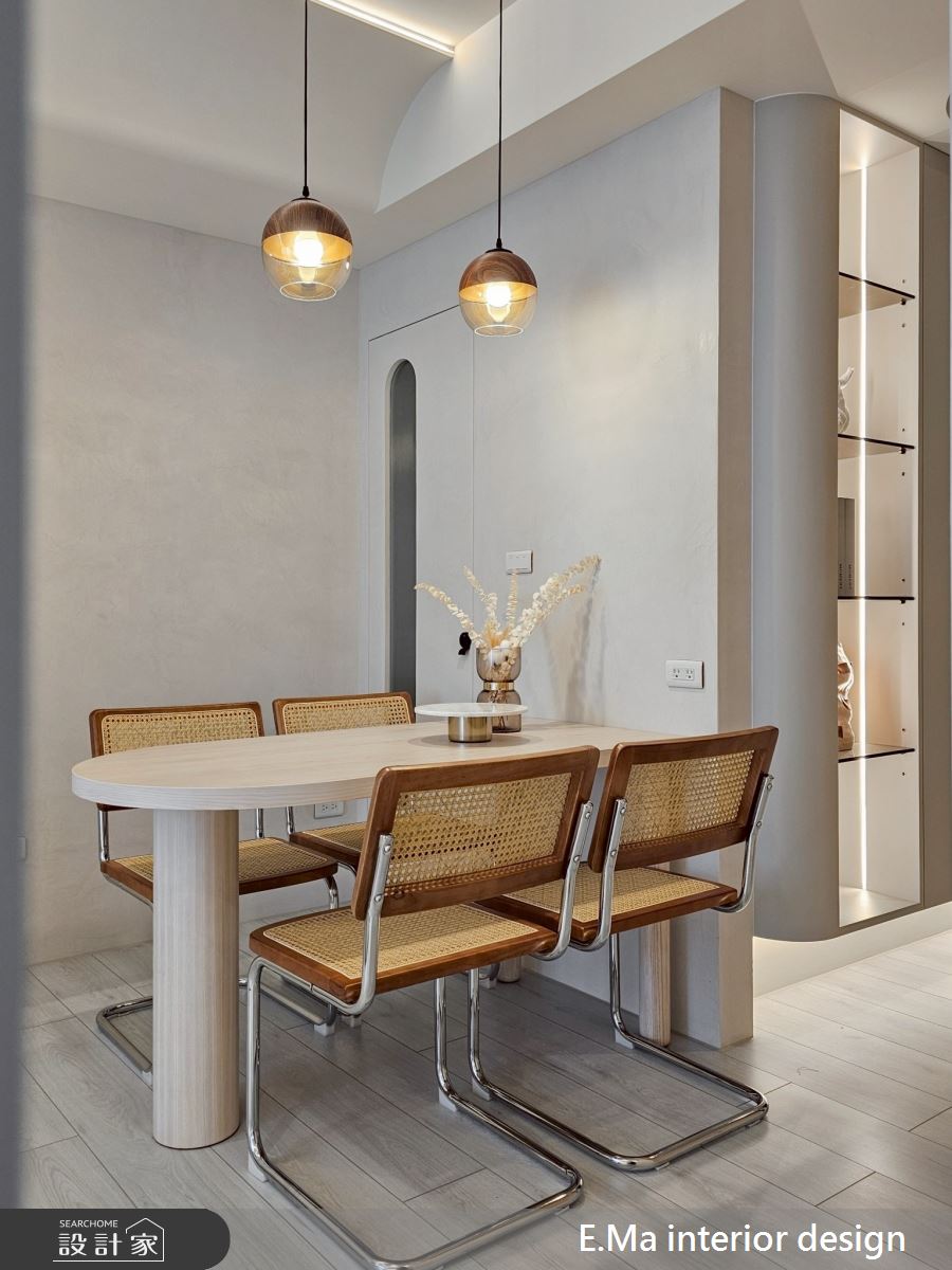 來自艾馬室內裝修設計的43坪輕莫蘭迪風住宅案,是一間單層新成屋(5年以下)的兩房格局,設計師藉由建材以鐵件、烤漆、石材、義大利塗料、玻璃、鏡面、KD-PP板、貓抓皮的搭配應用,實現一家人的理想生活。