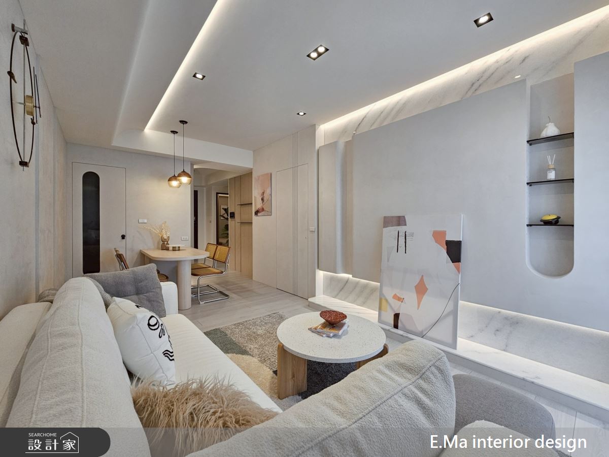 本案為艾馬室內裝修設計的31坪侘寂風新成屋(5年以下)設計作品,格局為單層兩房的居住空間。全室建材的搭配,應用超耐磨木地板、義大利塗料、天然石材,展現溫馨的居家氛圍。