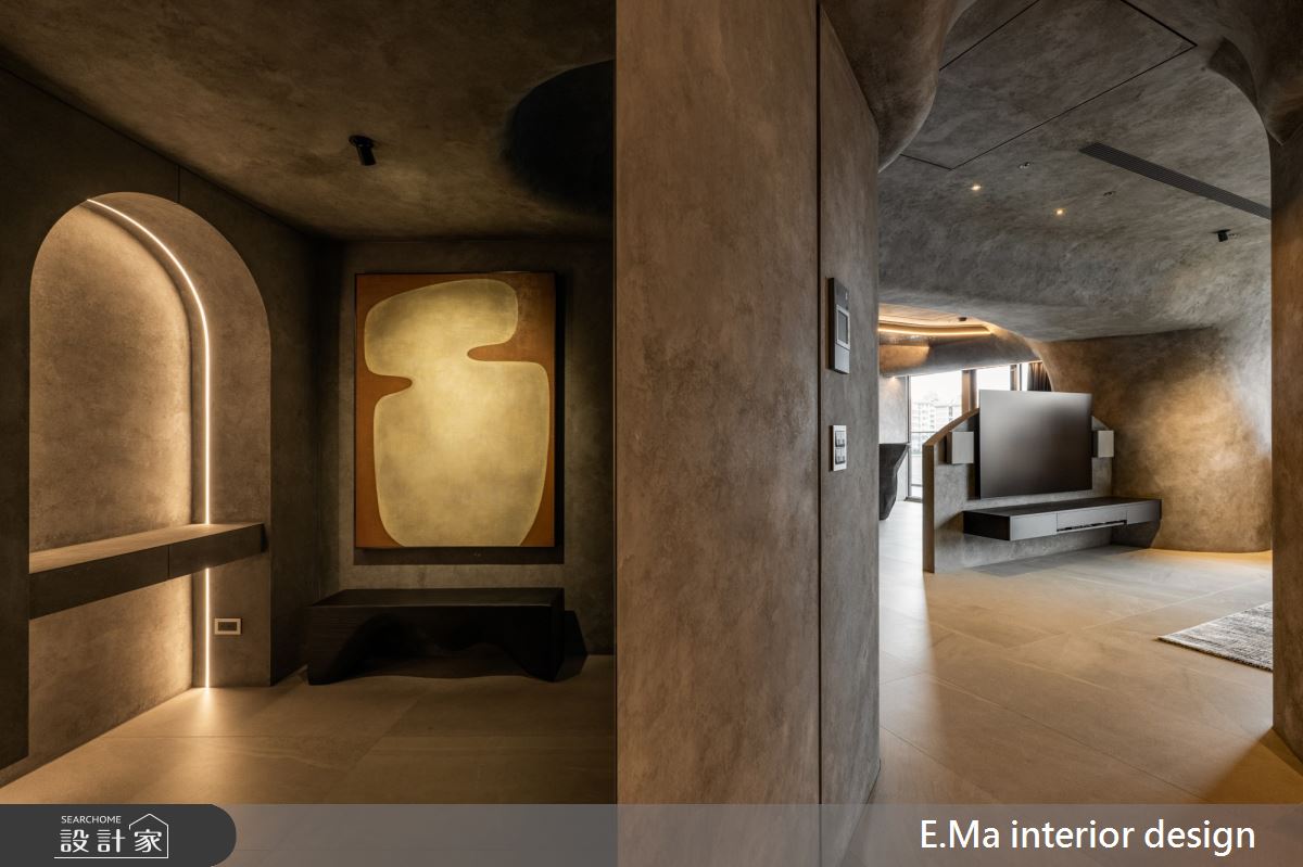 來自艾馬室內裝修設計的96坪洞穴風住宅案,屋主一家人共有2位大人,是一間單層新成屋(5年以下)的兩房格局,設計師藉由建材以鐵件、烤漆、大理石、石材的搭配應用,實現一家人的理想生活。