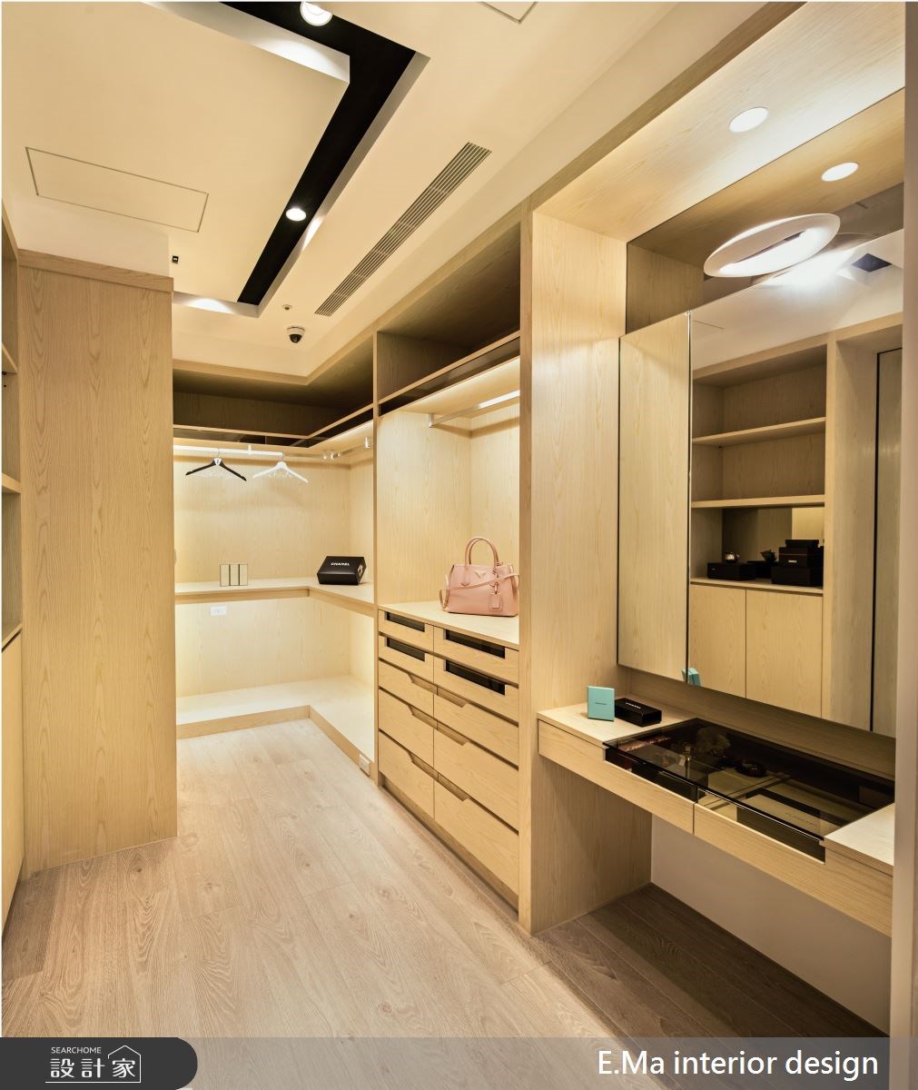 50 坪新婚大宅,設計師為屋主夫妻加入日式禪風定調,在室內鋪以大片原木,啟動療癒質感,並運用自然石材、天花造型堆疊層次,營造沉穩而內斂的生活體驗,快跟著小編一起來看看吧! 玄關處,加入 Z 字型長廊動線,並於天花加入閃電型燈條與之呼應,在轉折中增添視覺趣味;公領域內,在天花做出高度落差,修飾掉格局壓迫感,客廳電視主牆則大膽以自然石皮建構而成,拼湊粗獷的立體表情,並以此牆作為場域介質,形成回字格局,串起各區域的交流互動;餐廚區,配置加長型木桌,搭配中島及系統廚具,在高機能配置下滿足迎賓接待場景,一旁牆面則利用灰鏡及淺木皮,將多功能室及儲藏室入口加以隱藏,締造清爽俐落的視野;為營造舒適輕鬆氛圍,主臥室內,給予大量留白,並捨棄繁複櫃體規劃,在睡眠區與更衣室、主浴之間,安置了一道滑門,注入脈絡清晰的使用動線! 小編的最愛 更衣間內,依照屋主需求,增設兼具梳妝功能的檯面,並留有充裕的櫃體機能,方便夫妻同時收納衣物與生活用品!