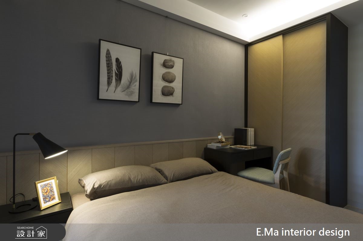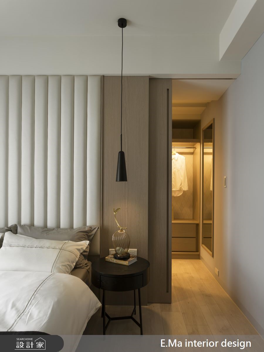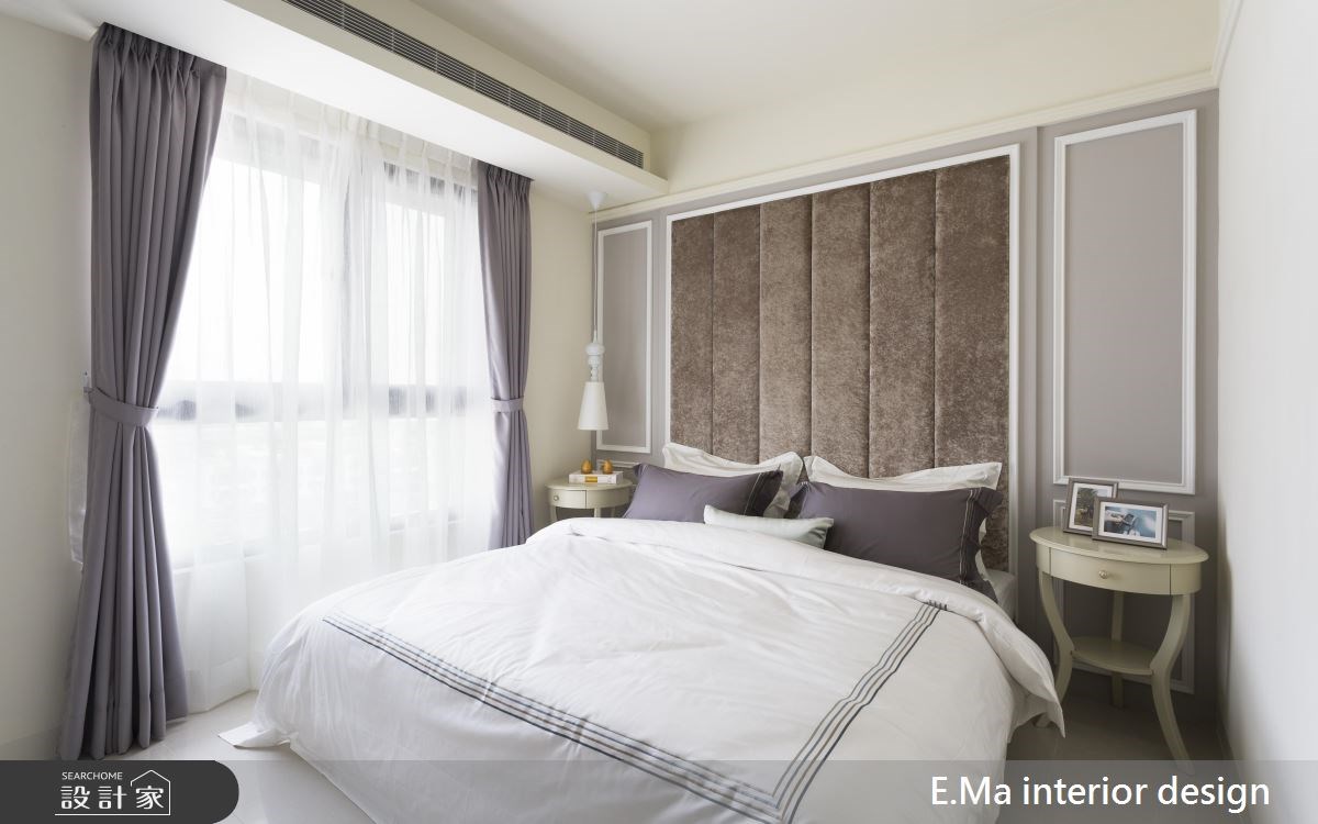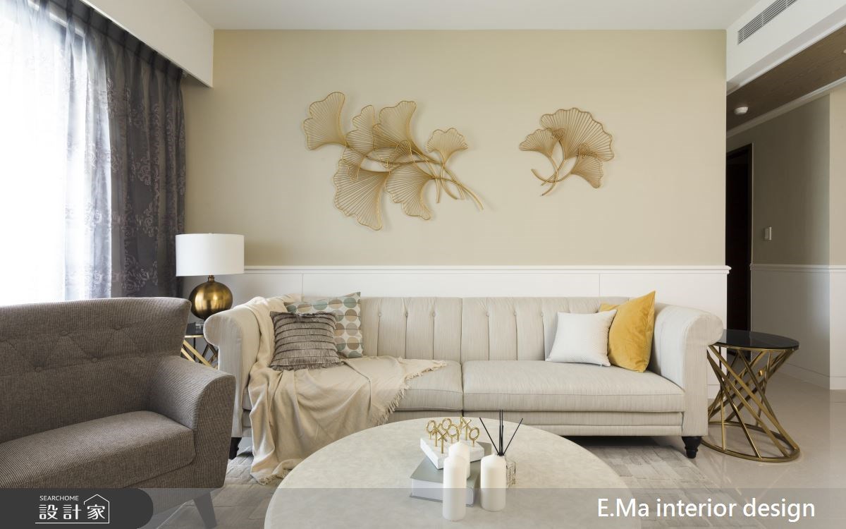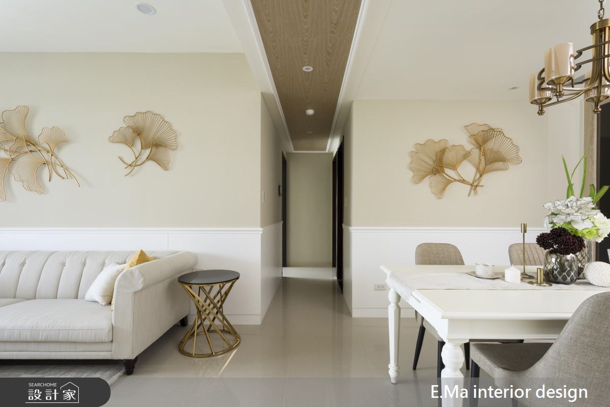 31 坪新古典宅,以淡淡的大地色渲染室內氣氛,用色單純耐看雅致,屏除繁複線板設計,以藝術裝飾、傢俱配件、異材質精彩搭配,打造女人們嚮往的夢幻居家情景! 客、餐廳開放手法,加寬兩個領域使用範圍,立面皆使用相同大地色,打造一氣呵成的氣氛,而沙發及餐桌背牆同款的金屬雕花裝飾,與牆面色彩不謀而合具漸層堆疊視覺效果,昇華了空間質感,想在沙發慵懶品咖啡,或與姐妹在餐廳享用輕食點心,都能擁有置身奢華下午茶咖啡館的好氣氛!另外,設計師也善用異材質拼搭效果豐富輕古典空間層次,客廳大面白理石電視牆,增添優雅古典氛圍,而天花處運用木皮混搭打造趣味表情,同時具有虛化樑線效果! 小編的最愛 主臥床頭以藕紫絨布,賦予私領域高貴享受,書桌及化妝台坐落臥房中央,回字型動線使用順暢,並輕巧劃分梳妝及睡鋪區,睡眠時多了一份隱私感,升級私領域的尊榮感。