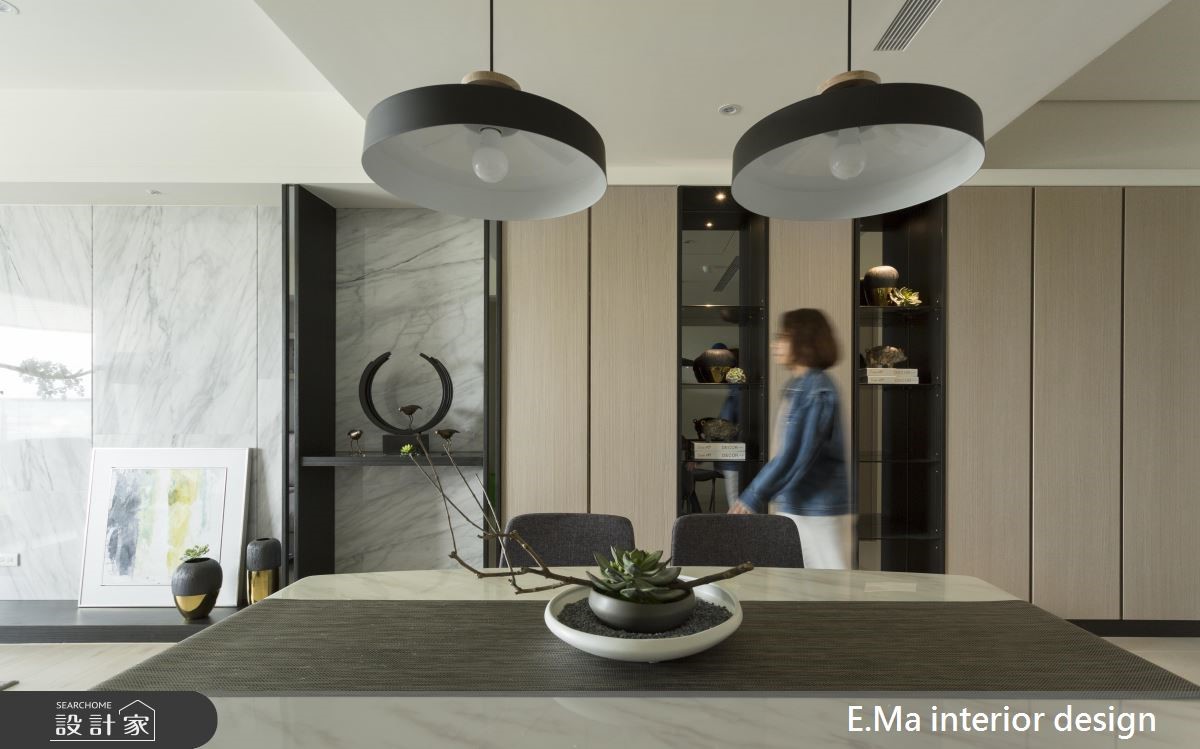 48 坪的現代風住宅,透過輕淺的木質搭配大理石的皎潔肌理,加上充足的自然光線,塑造輕盈柔和的居家氛圍,讓人每天早晨都被滿滿的陽光喚醒。 公領域以開放式的設計,讓室內動線清晰無阻隔,同時援引陽台的綠景入內,提升居家的自然風光。客廳的沙發背牆妝點淡淡的灰色,以層板規劃展示空間,並在櫃體邊緣裝飾鏡面,減輕立面的視覺重量。而電視牆藉由雪白的大理石材質,增添空間的優雅感受,同時與灰色牆面形成對比,協調出宜人的生活氣息。 設計師在玄關延伸到餐廳的收納櫃之中,安排了兩道鏡面襯底的展示空間,除了賦予室內豐富的機能變化,也點亮居家的整體氛圍。主臥則透過純白繃布搭配質感木紋,讓立面顯得溫暖舒適,同時藉由一道拉門隱藏後方的更衣室,讓屋主能擁有悠閒自在的穿搭時光。 小編的最愛 隨手拿起一本書,坐在客廳豔陽黃的椅子上,伴著窗邊和煦的微風,慢慢閱讀,讓知性氣質成為居家最好的美景。