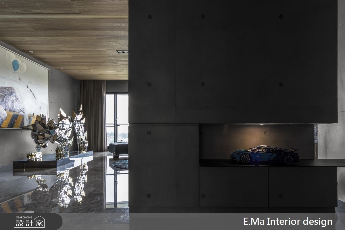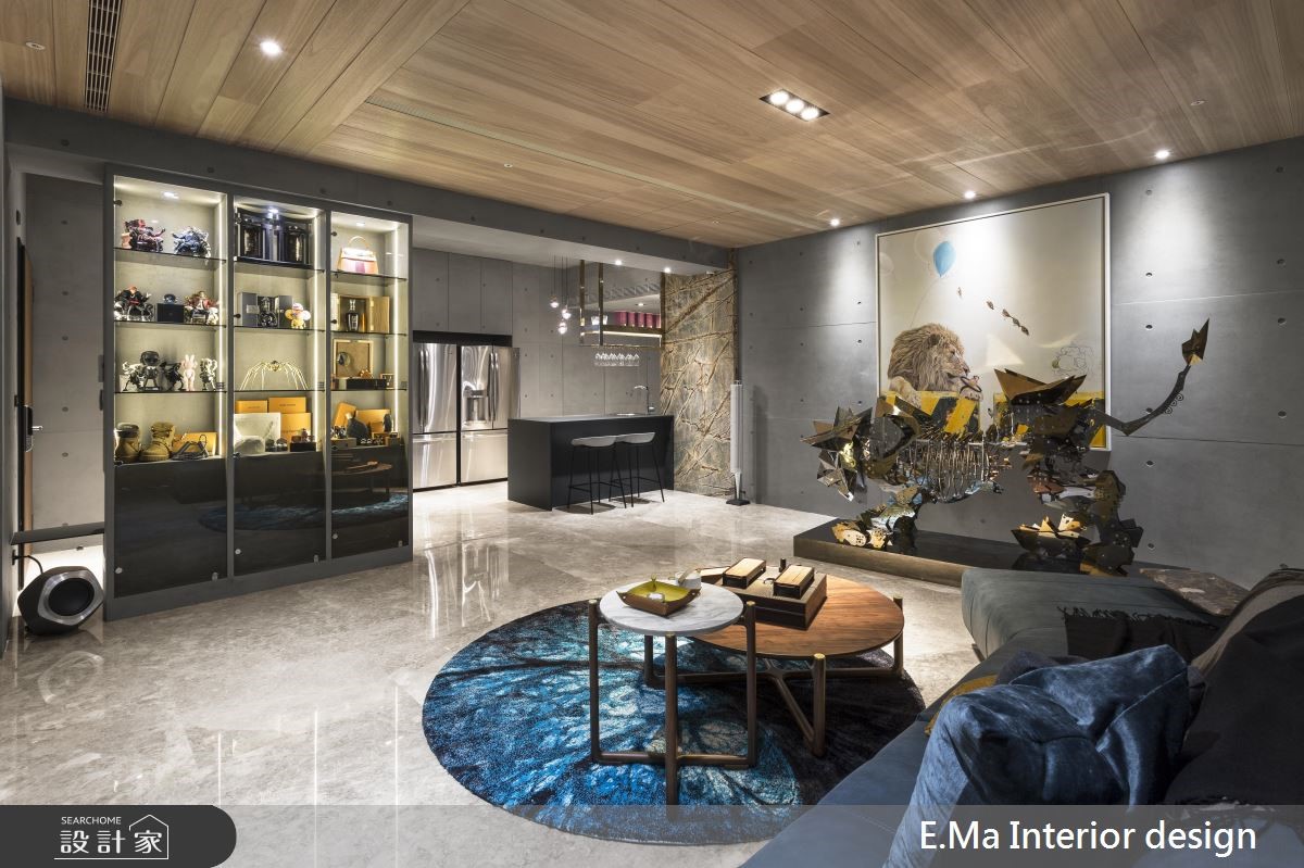 家,除了是心停泊的港灣,更是一個人個性及品味的象徵及代表。這套56坪奢華風格的家,顛覆了以往看待空間、看待「家」的方式,選擇最適合居住者的方式,讓家成為忠於自我的代表、豐富生活的想像。 因應屋主的喜好,一房一廳一酒窖的獨特格局,跳脫了既有居住形式的圈囿,格局開放寬敞,像是渡假別墅般給予居住者放鬆自在的感受。全室空間使用了很多特殊建材,像是清水模、夏木漱石大理石、鍍鈦鐵件、KD木地板等特殊建材,建構出質感而獨特的風格,客廳的端景牆擺放上獅子的畫作和裝置藝術,表現屋主霸氣的性格,旁側則是開放式的中島吧檯,在沒有隔間的空間中,便於與客廳串聯、迎賓宴客。轉折進入專業的大酒窖,將屋主的興趣喜好放大,更是屋如其人、人如其屋的風景。主臥室延續清水模材質,放淡裝修的痕跡,讓人得以在低調、安靜的空間中,整夜好眠。 小編的最愛 代表屋主喜好的酒窖中,擺放上收藏的藝術品,並且通過層架的安排,擺放上酒瓶後,會構成代表屋主的符號,為其量身訂製家的細節。