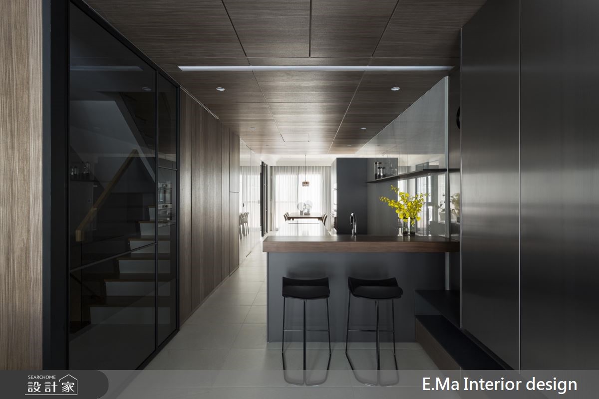 多年老屋面臨採光不良、管線老舊等問題。老屋改造計畫裡,除了強化基礎工程、重整格局,考量一樓隱私問題,將生活的領域調整至二樓以上,褪去樓梯舊有形式,改為鐵製鋼構梯並放大面積;建築外觀則覆以大面玻璃,引入充沛光線,視覺的延伸及穿透感,讓空間更顯明亮、寬敞。 一樓作為車庫、收納和多功能室的使用。二樓公領域以簡約現代風呈現,電視牆利用不銹鋼材質打造,隨著光線的映照下,展現時尚細緻丰采;清水模鋪設背牆,搭配墨綠色沙發,展現沉穩、大器之姿,再伴隨木紋肌理的妝點,營造出樸實溫暖的家屋溫度;原木質感從中島的天花板,一路延伸到餐廚領域,替冷冽的電視牆注入暖度、褪下冷調的質感,切割的線條感鋪設下,視覺一路延伸,更顯舒心開闊之意;餐廳裡,透過木紋質感的餐桌椅搭配,營造溫馨的用餐空間,天花板垂掛幾盞金屬光澤的吊燈,擦亮視覺新意。三樓為私領域,透過完整衣物等雜物收納規劃,更衣室更結合衛浴空間,讓動線更為順暢。 小編的最愛 四樓是孩子們專屬天堂,以大量木紋打造閱讀玩樂空間,天花板結合天井設計,享有充足光線,讀書倦了,還可抬頭欣賞藍天白雲的精彩。