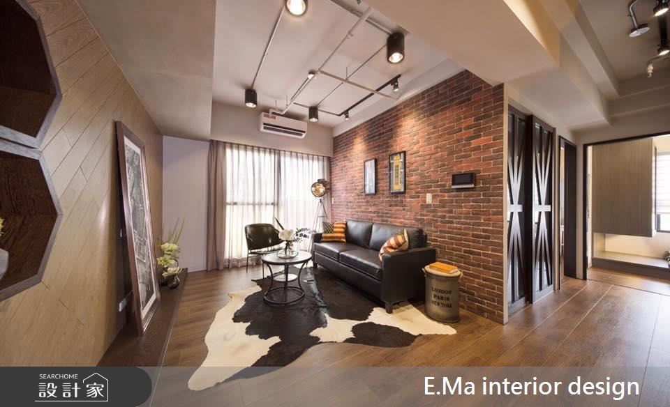 32坪居家空間,空間風格以工業風為底調,著重於動線及收納規劃,經由隔間變動,達到空間感放大與塑造流暢動線。整體採以工業風格為基礎,以各種元素逐一演繹,呈現暖調具個性的氛圍,於沙發牆加入大面積紅磚牆、在地坪鋪陳溫煦木地坪,並結合屋主的收藏愛好,選擇精挑細選的藝術軟件妝點各角落,為設計畫龍點睛;且發揮了轉角空間,將餐桌安置在此,爭取更合理且經濟的坪效;主臥內,特意打造一座玻璃衣櫃,兼具收納機能之餘,也利用衣櫃鏡面創造空間放大效果,並簡化量體的沉重封閉感;次臥於牆面鋪貼風景壁紙,讓空間表情更為豐富,成為家居中的一處迷人畫面。