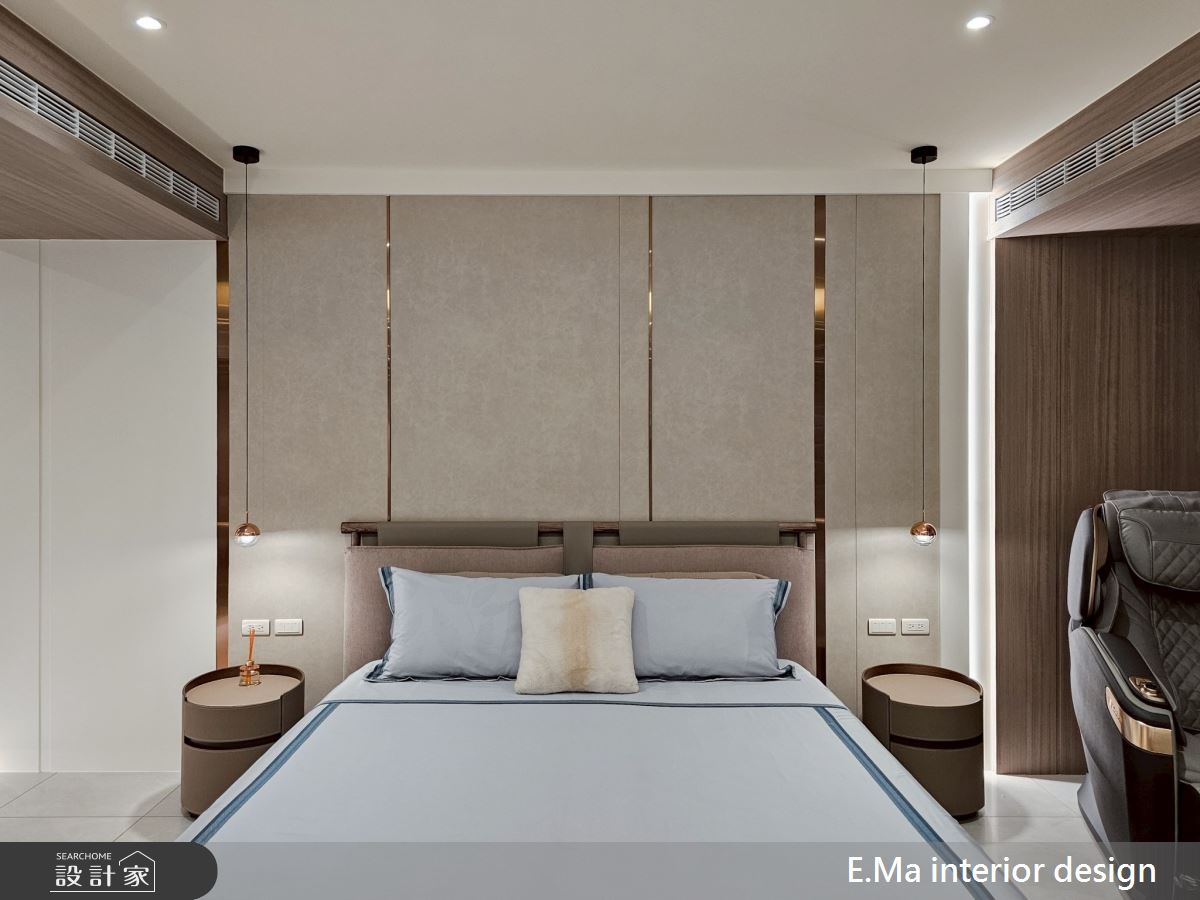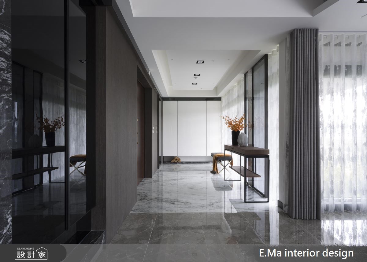 由艾馬室內裝修設計精心規劃的115坪五房住宅空間,家庭成員一共有4位大人、2位長輩。因應屋主需求,設計師運用現代風作為主軸,搭配木地板、皮革、石材、KD木皮板、金屬,打造全家人的夢想家居。