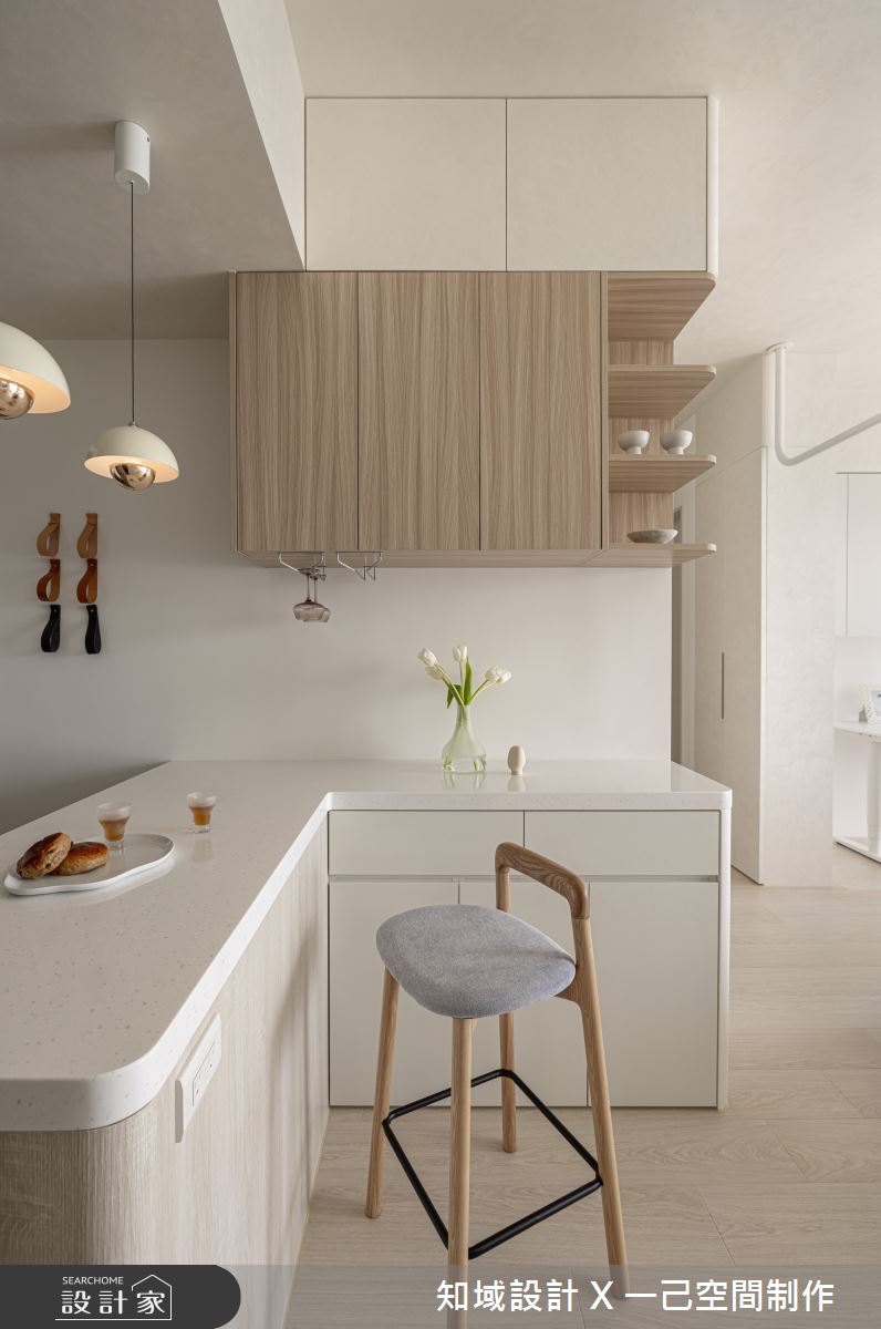 來自知域設計 X 一己空間制作的40坪現代風住宅案,屋主一家人共有2位大人、1位小孩,是一間單層中古屋(5~15年)的三房格局,設計師藉由建材以特殊漆、石英石、魚骨木地板、玻璃鏡面、油漆噴漆、系統櫃、木作、批批板的搭配應用,實現一家人的理想生活。