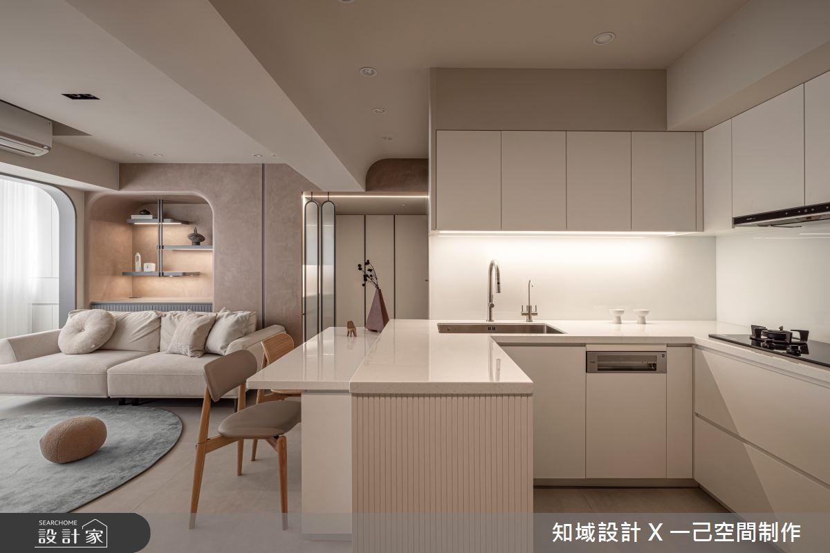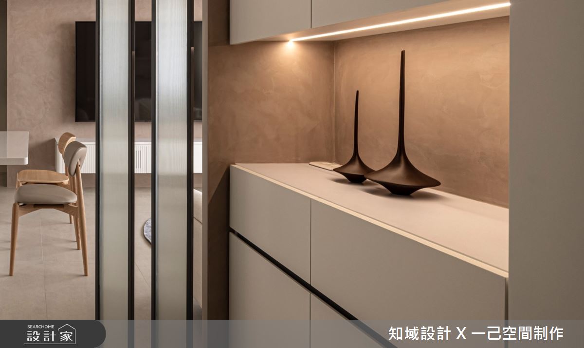 由知域設計 X 一己空間制作精心規劃的21坪兩房住宅空間,家庭成員一共有2位大人。因應屋主需求,設計師運用混搭風作為主軸,搭配大板磚、塗料、科技板、鋁件、防火板、美飾板、鋁,打造全家人的夢想家居。
