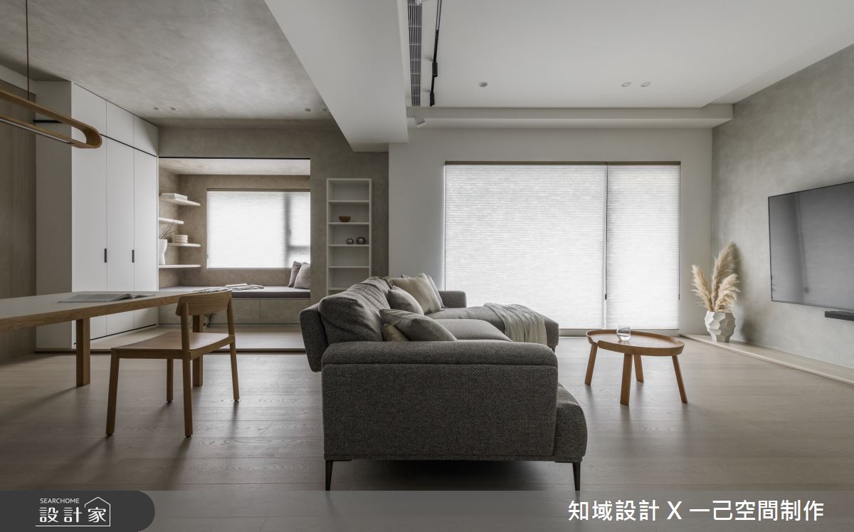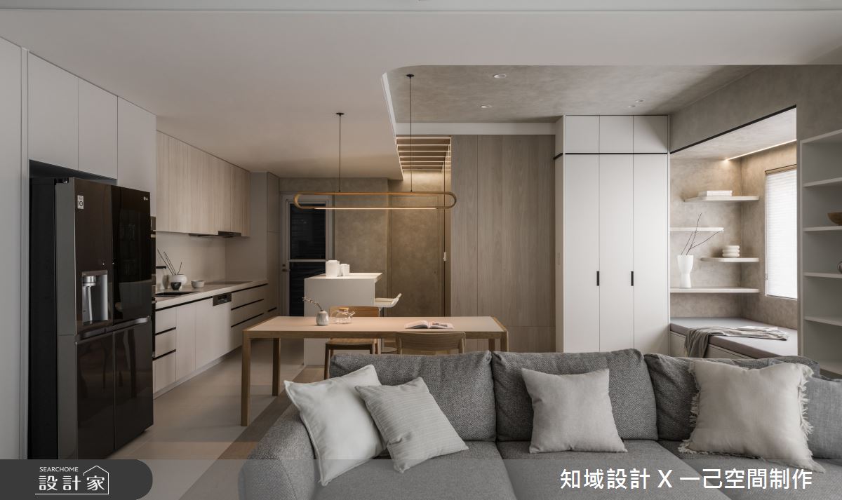 由知域設計 X 一己空間制作精心規劃的21坪兩房住宅空間,家庭成員一共有2位大人。因應屋主需求,設計師運用混搭風作為主軸,搭配大板磚、塗料、科技板、鋁件、防火板、美飾板、鋁,打造全家人的夢想家居。