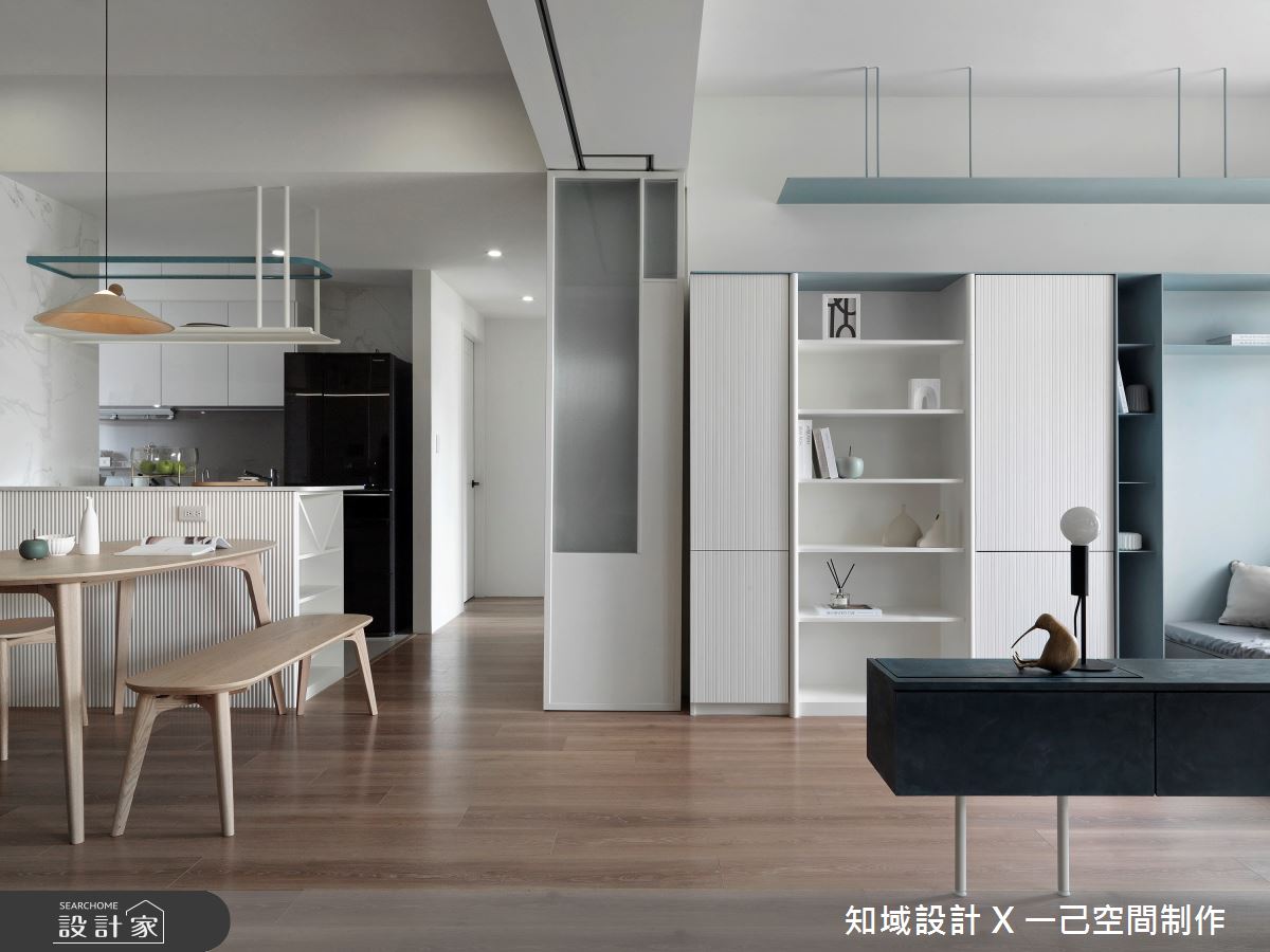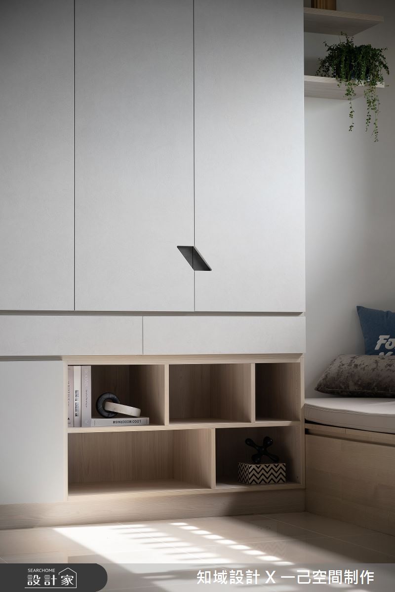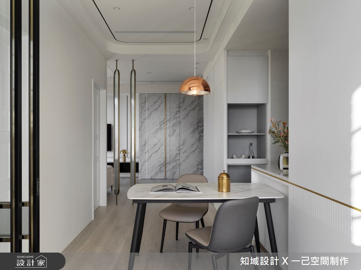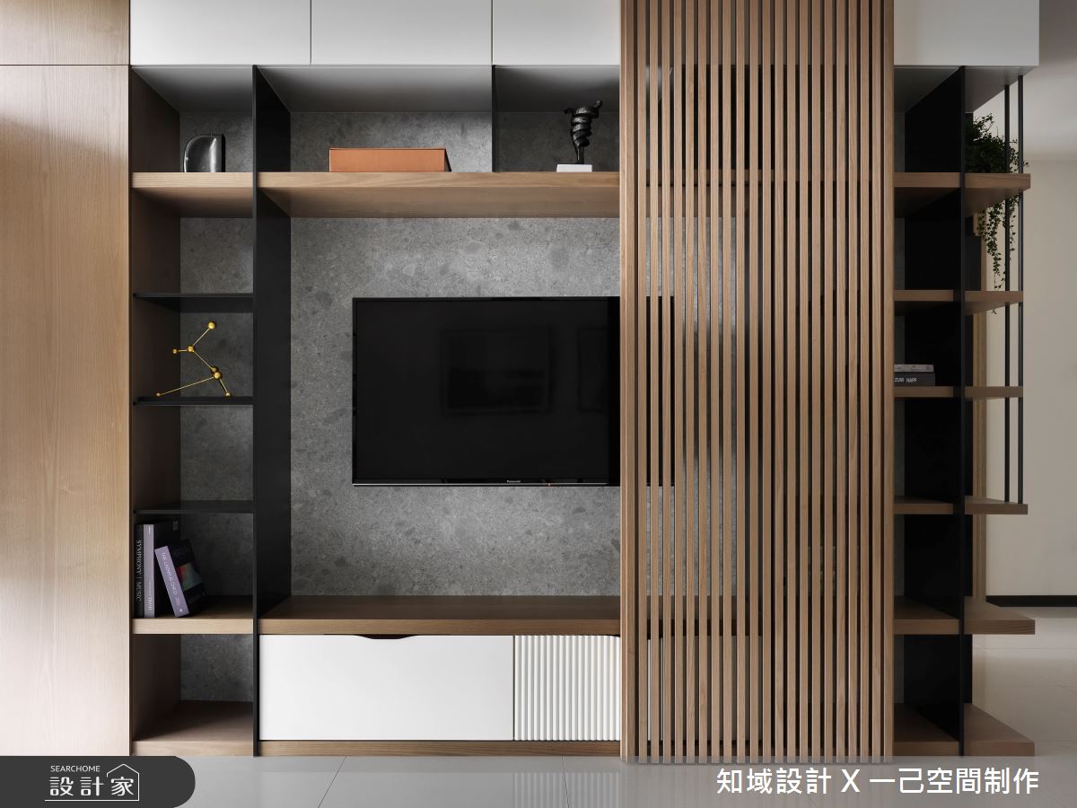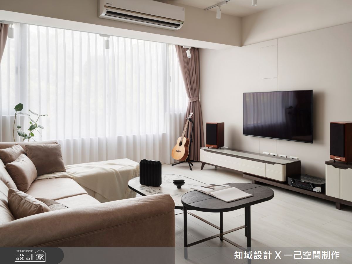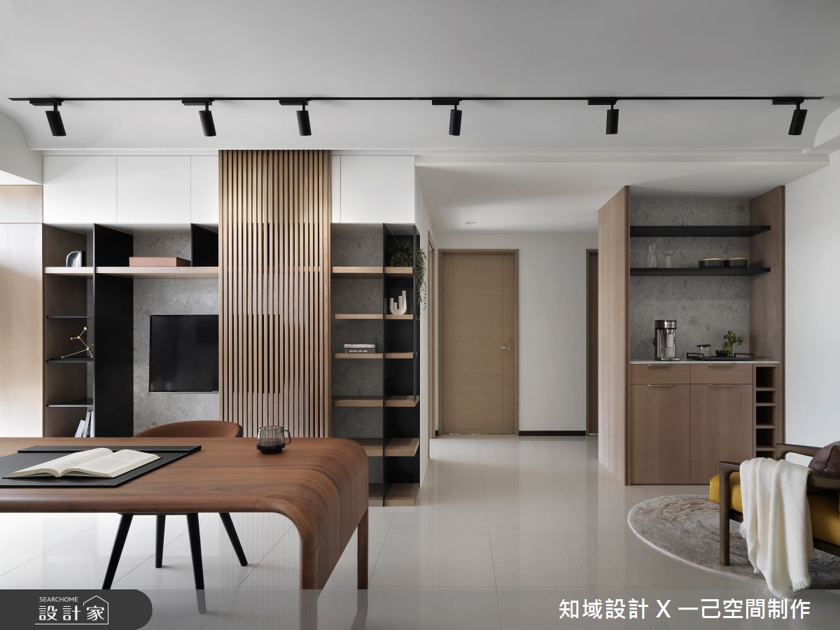 由知域設計 X 一己空間制作精心規劃的25坪兩房住宅空間,家庭成員一共有2位大人。因應屋主需求,設計師運用混搭風作為主軸,搭配乳膠漆、實木皮、系統櫃、燈飾,打造全家人的夢想家居。
