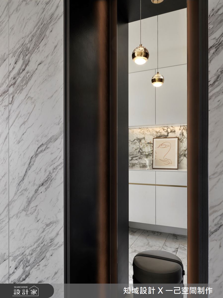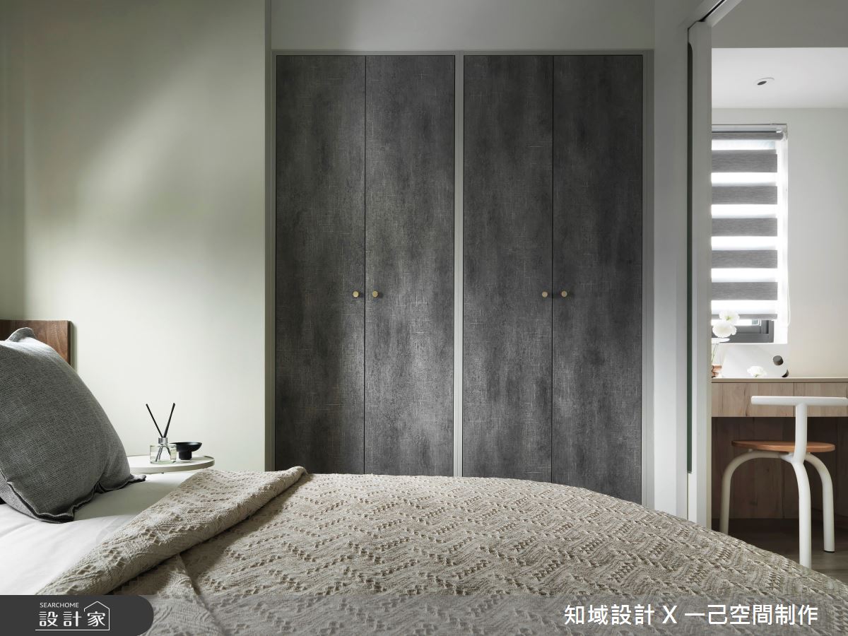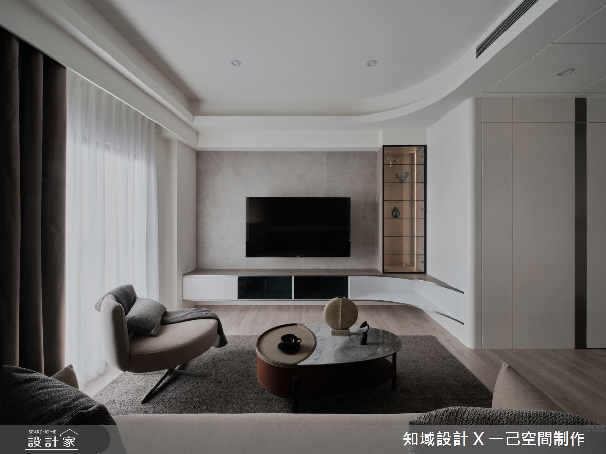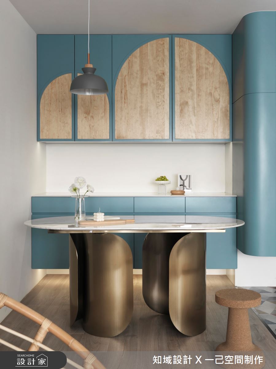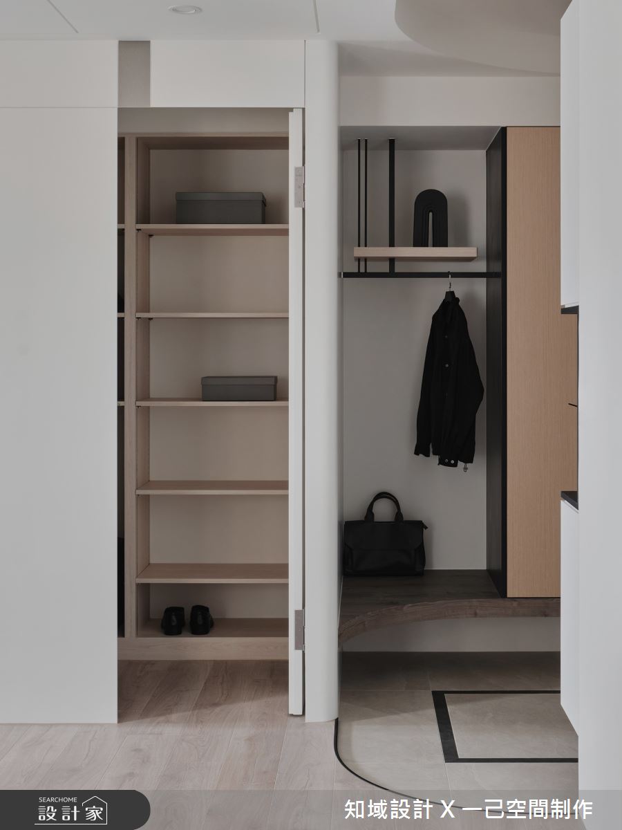 由知域設計 X 一己空間制作精心規劃的25坪兩房住宅空間,家庭成員一共有2位大人。因應屋主需求,設計師運用混搭風作為主軸,搭配乳膠漆、實木皮、系統櫃、燈飾,打造全家人的夢想家居。