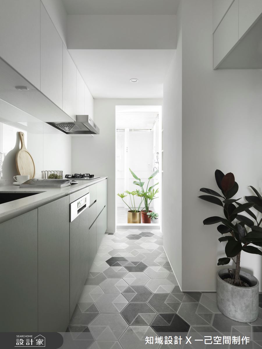 本案為知域設計 X 一己空間制作的25坪混搭風新成屋(5年以下)設計作品,格局為單層三房的居住空間。居住成員包含2位大人。全室建材的搭配,應用六角花磚、實木皮、樂土塗料、油漆跳色,展現溫馨的居家氛圍。
