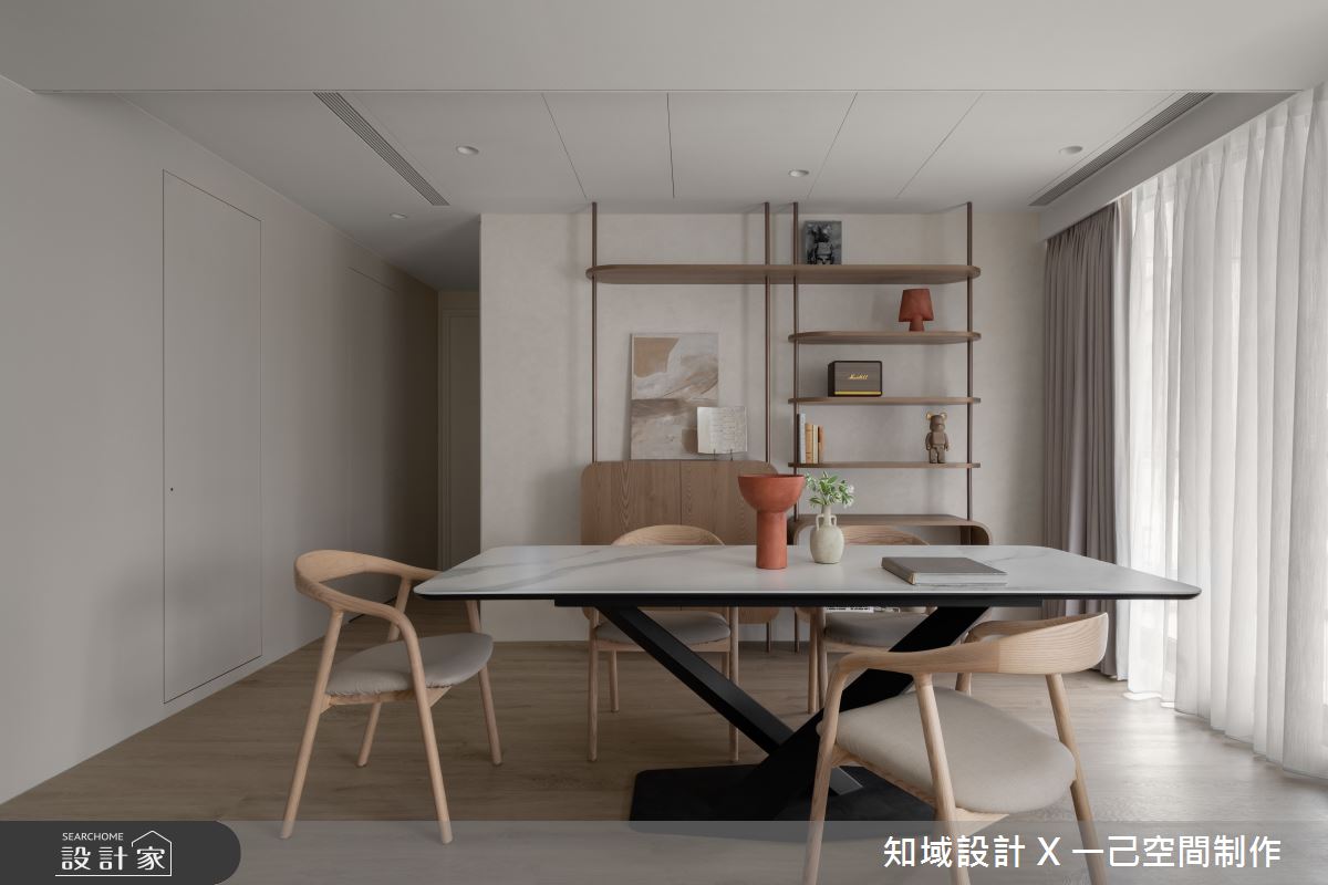 由知域設計 X 一己空間制作精心規劃的21坪兩房住宅空間,家庭成員一共有2位大人。因應屋主需求,設計師運用混搭風作為主軸,搭配大板磚、塗料、科技板、鋁件、防火板、美飾板、鋁,打造全家人的夢想家居。