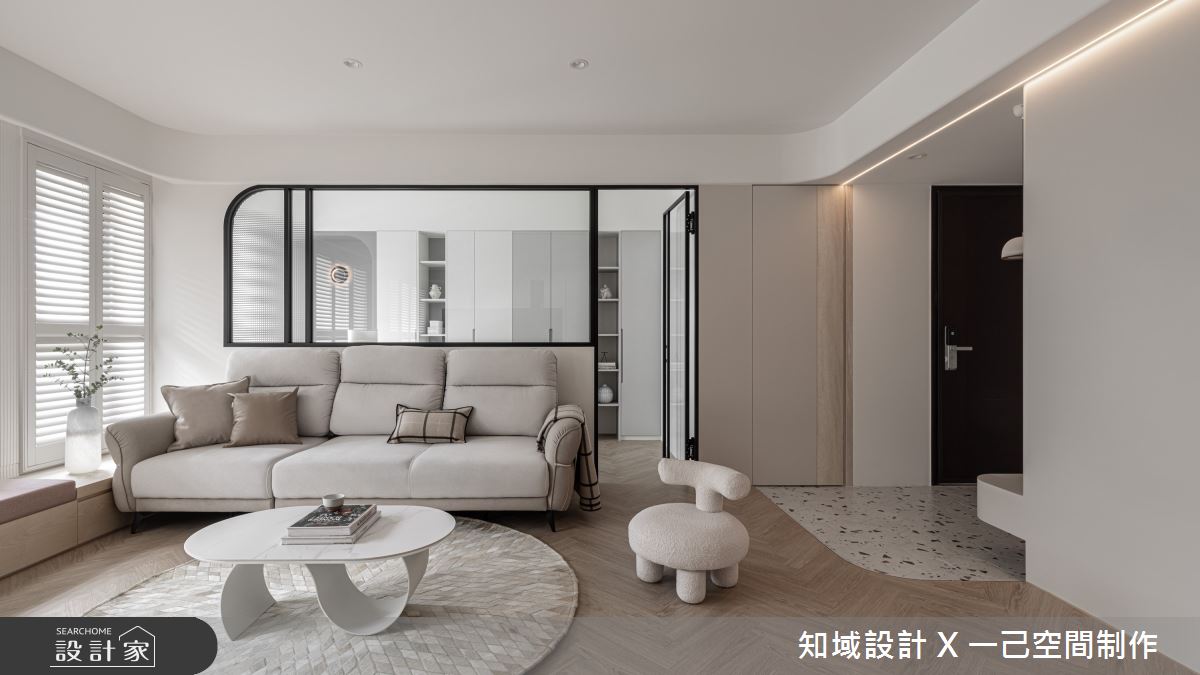 知域設計 X 一己空間制作以烤漆的搭配應用,呈現混搭風居家氛圍,將此間37坪、三房、單層、新成屋(5年以下)打造成舒適愜意的家庭空間,完成3位大人、1位小孩全家人的夢想之居。