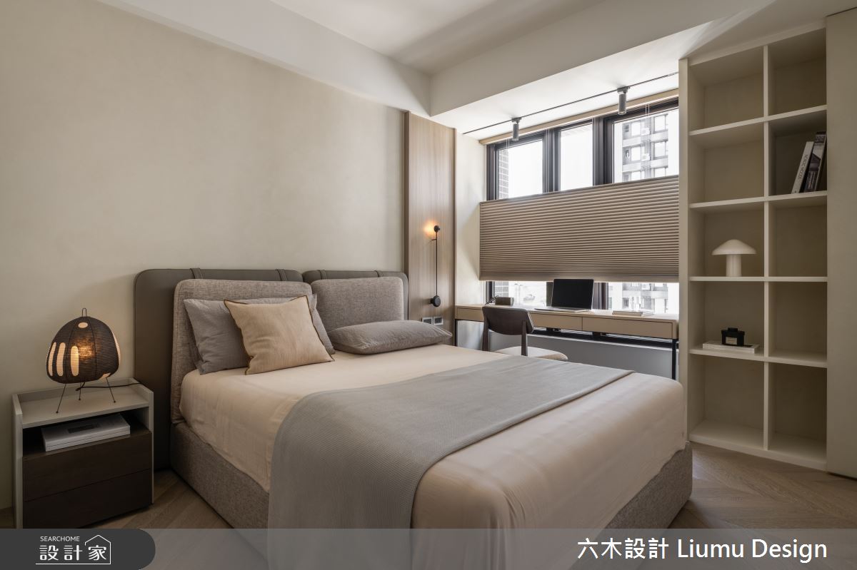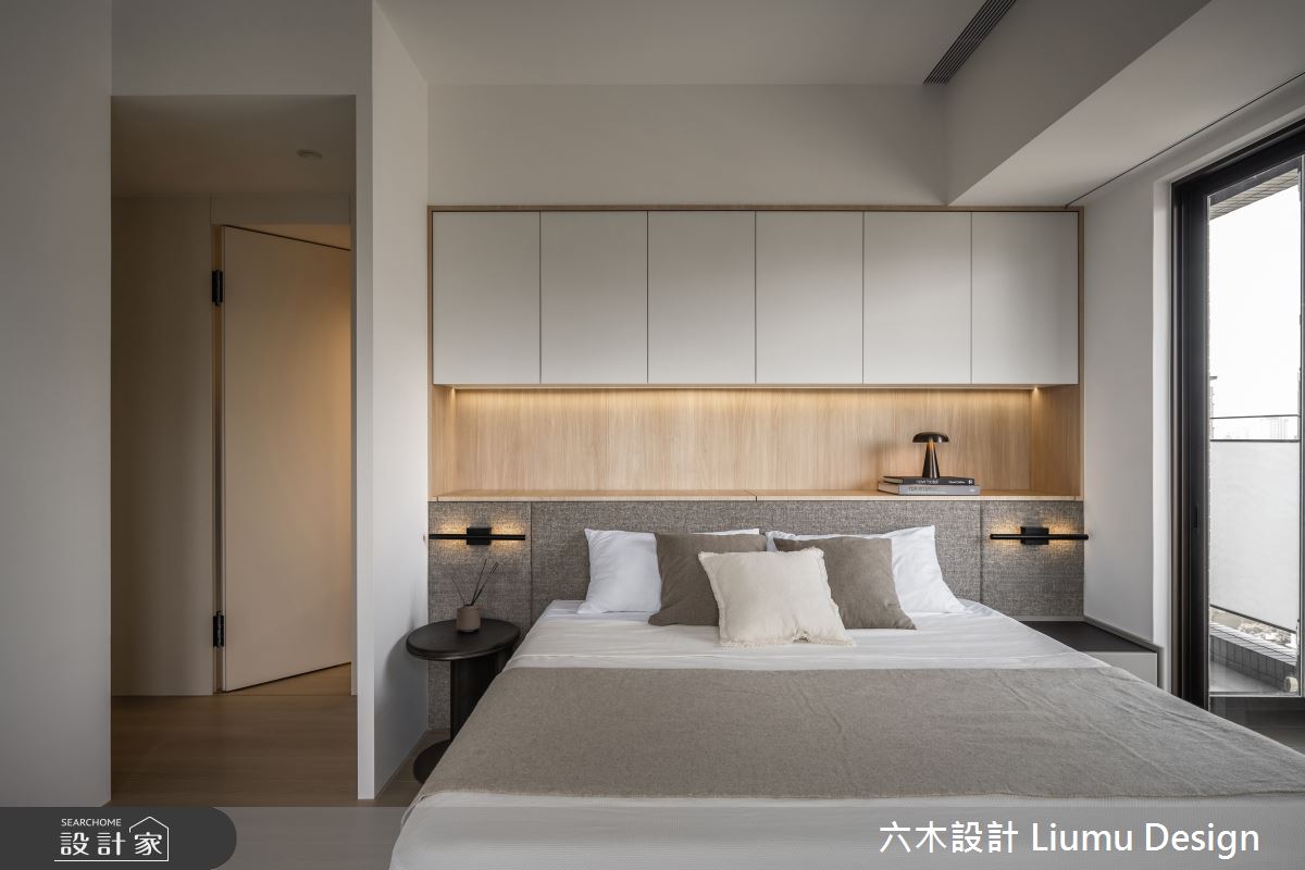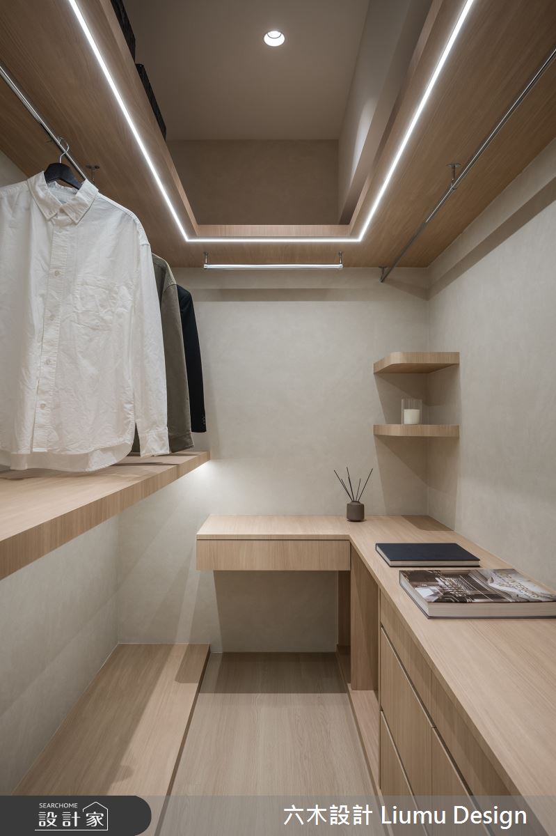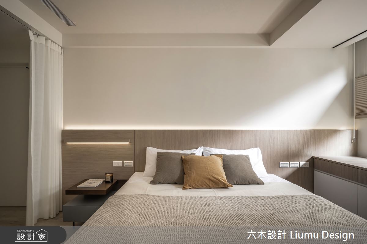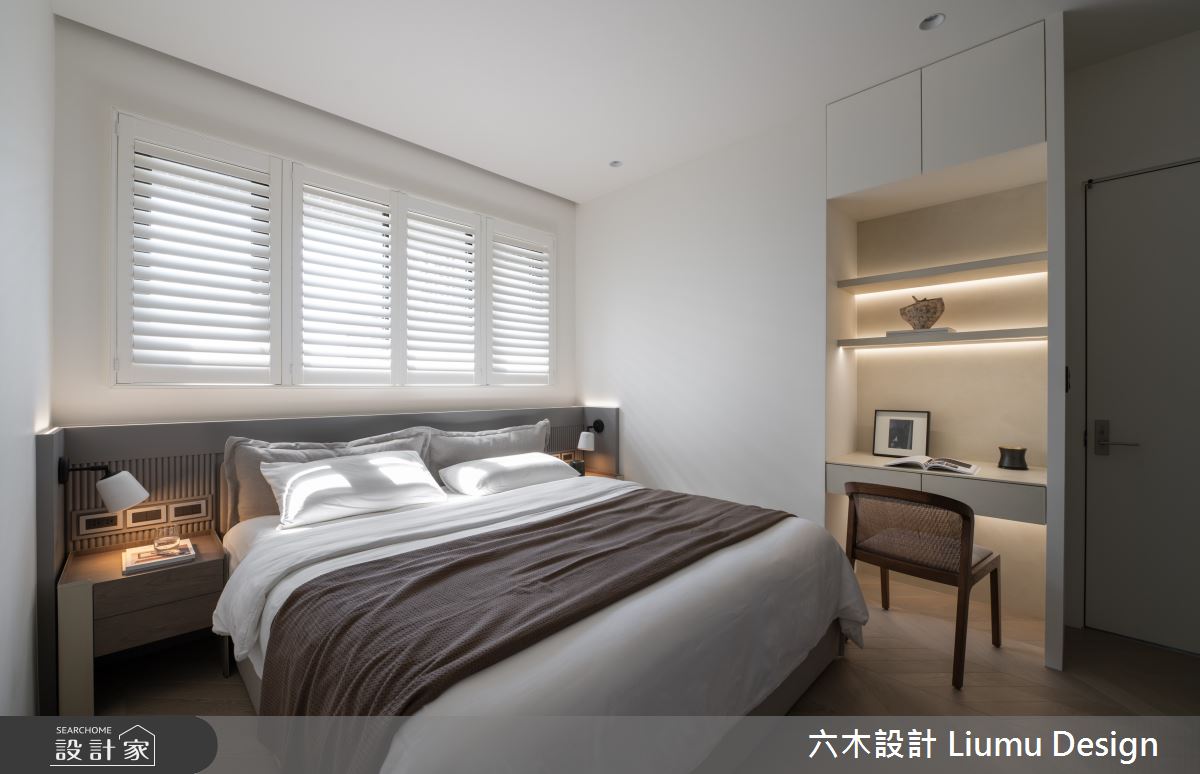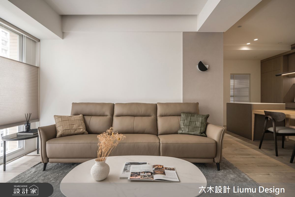 六木設計 Liumu Design以乳膠漆、超耐磨木地板、不鏽鋼、鐵件、灰鏡、木作貼皮、烤漆、鋼刷木皮、磁磚、木百葉、軌道燈、石材、線板、噴漆、藝術塗料、薄板的搭配應用,呈現北歐風居家氛圍,將此間35坪、三房、單層、新成屋(5年以下)打造成舒適愜意的家庭空間,完成2位大人全家人的夢想之居。
