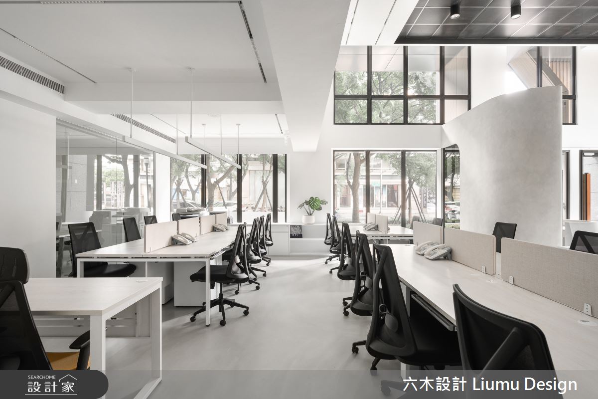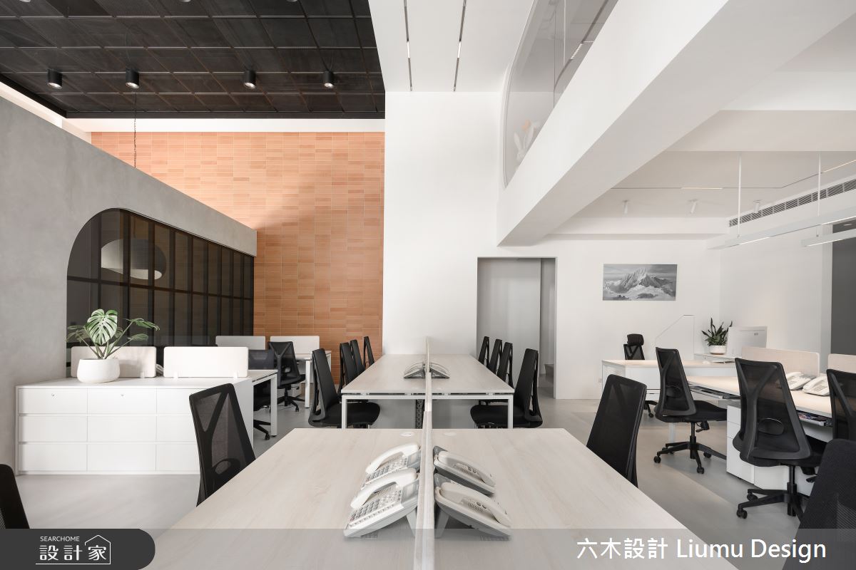 六木設計 Liumu Design以油漆、鐵道磚、不鏽鋼、鐵件、木作貼皮、烤漆、系統板材、磁磚、軌道燈、皮革、繃布、噴漆、優的鋼石、磁吸軌道燈、藝術塗料的搭配應用,呈現現代風的風格氣息,將此間80坪新成屋(5年以下)優雅詮釋成舒適愜意的商業空間。