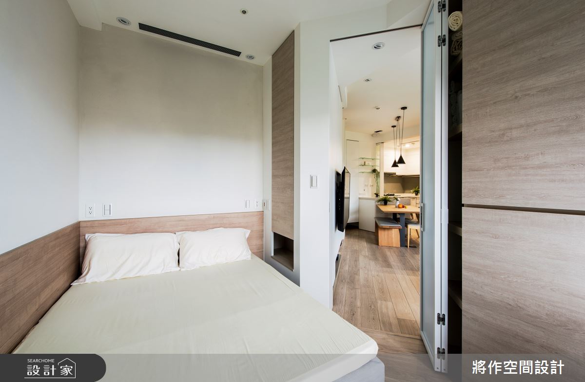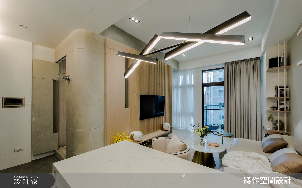 由將作空間設計精心規劃的15坪兩房住宅空間。因應屋主需求,設計師運用簡約風作為主軸,搭配乳膠漆、六角磚/蜂巢磚、超耐磨木地板、鐵件、木作貼皮、磁磚、人造石、噴砂玻璃,打造全家人的夢想家居。