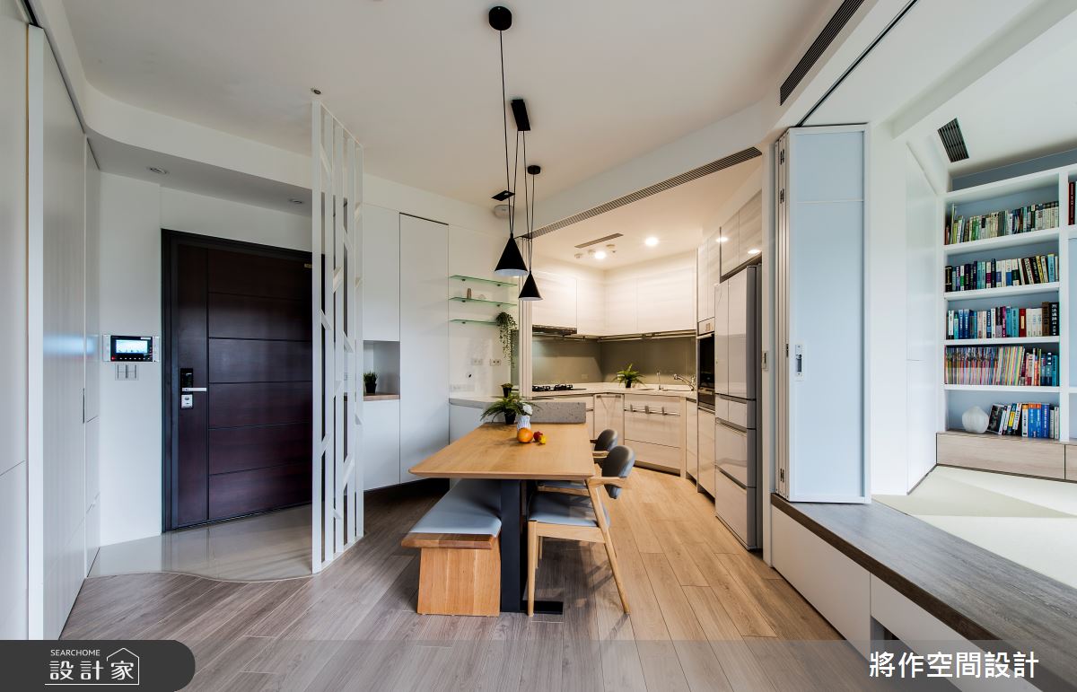 來自將作空間設計的33坪現代簡約風住宅案,屋主一家人共有4位大人,是一間單層新成屋(5年以下)的三房格局,設計師藉由建材以木地板、鐵件的搭配應用,實現一家人的理想生活。