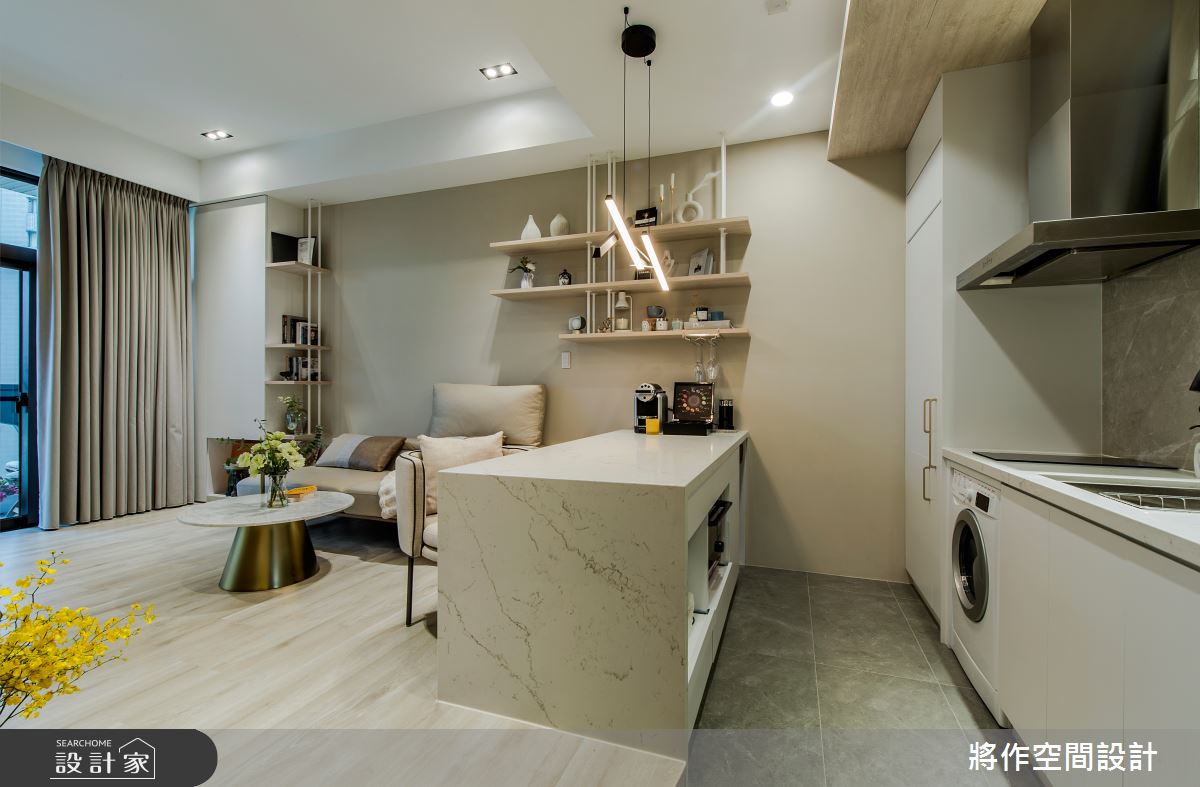 由將作空間設計精心規劃的22坪兩房住宅空間。因應屋主需求,設計師運用簡約風作為主軸,搭配鐵件、磁磚、玻璃、美耐板,打造全家人的夢想家居。