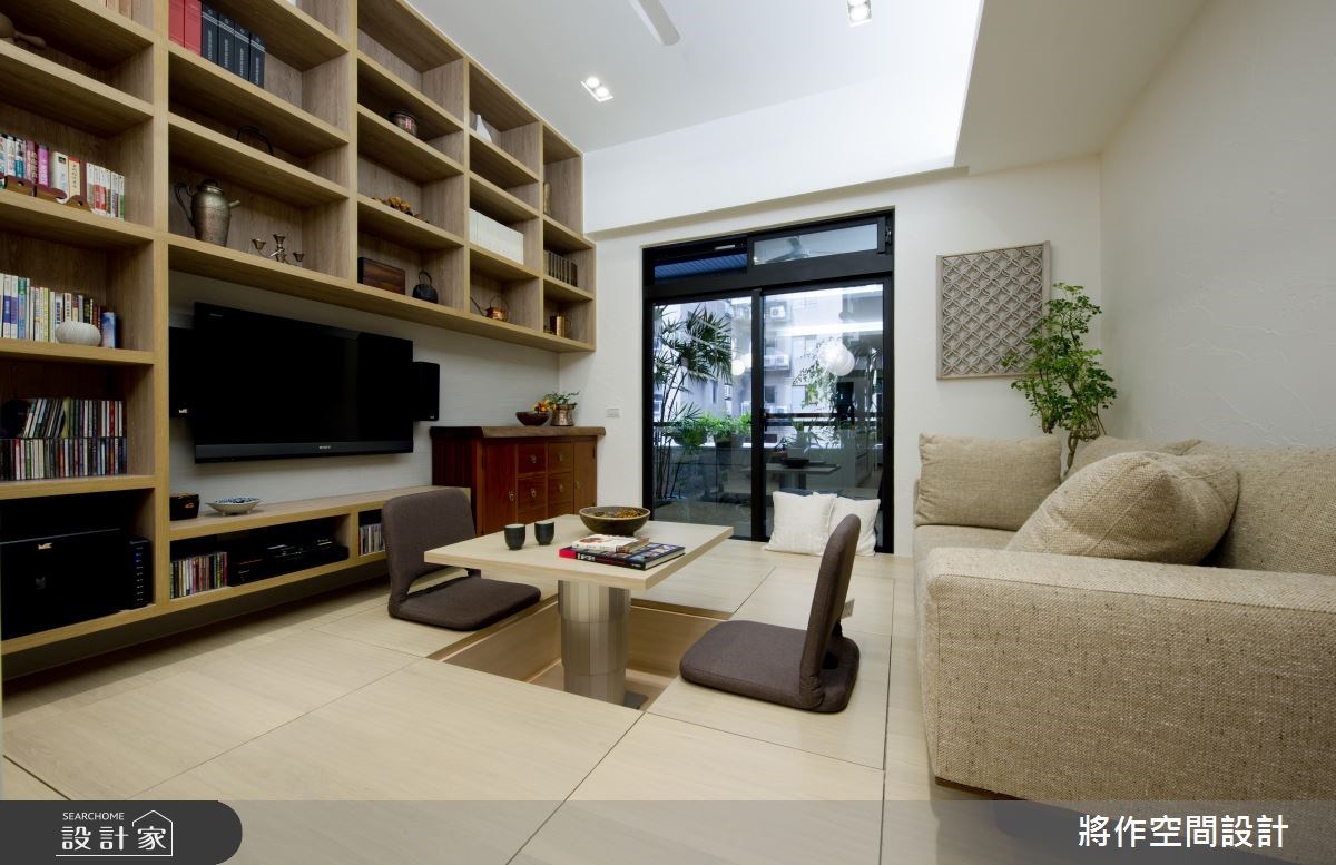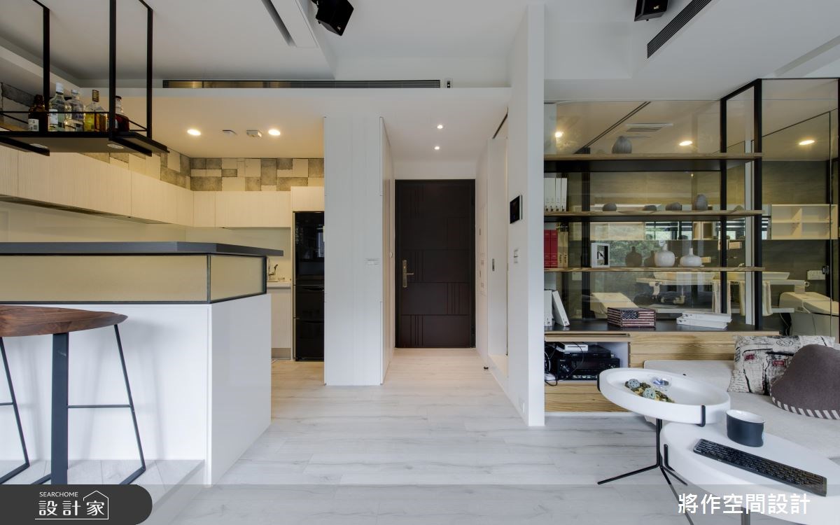18 坪現代風居宅,雖然本身具有 3 米 3 的屋高,卻是採光面不足的狹長屋。在本次空間規劃中,如何善用屋高的優勢條件?如何將走道位置隱性融入生活之中?以及,臥室處的實牆是否有存在的必要性?將作設計從這 3 個角度出發,為屋主打造流暢的空間動線,並創造更大的坪效。 考量到家中的使用人口單純,設計師將臥室牆面拆除,並以 4 扇雙開不銹鋼噴漆門賦予輕盈、彈性的領域分界,動線、採光也變得更加流暢,中段則安排為廚房用途,藉由樑柱深度配置廚具和冰箱,使立面線條整齊一致,加上中島餐桌、電器櫃等機能性,減少了格局的封閉感和放大使用空間,無形之間也塑造了環形的流暢動線。架高的木地板區域連結客廳,地板的九宮格切線下方也暗藏玄機,隱納了充裕的收納機能和升降式桌椅,可依據使用需求,讓客廳變身為和室,或是休閒、閱讀空間,滿足不同的生活情境。 小編的最愛 善用 3 米 3 的屋高條件,賦予地坪高度更豐富的階段層次,既可作為空間的隱形界定,在不影響空間的舒適度前提下,也為屋主創造了大量的收納機能。