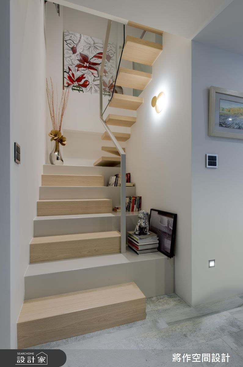 50 坪現代風樓中樓,設計師透過動線與場域的串聯,搭佐家具軟件、材質表現等悉心擘劃,讓住宅有如個人藝廊般,展示出每一道動人的生活景象,快跟著小編一起來看看吧! 客廳電視牆鋪陳仿清水模材質,除了彰顯質樸灰彩,也帶出斑駁的原始意象,並選搭帶有個人風格的家具、畫作妝點,在造型多元的軟件混搭下,詮釋獨特具創意的生活視角;與客廳佔地大小相仿的餐廚領域,則呈現長向的機能配置,透過清玻拉門串聯與客廳的視野,聯繫生活中的互動時刻,餐廳旁則安排架高的和室空間,以恬靜的日式語彙締造優雅情境,成為一處絕佳的沉靜角落;臥房場域,於主臥揮灑飽和亮麗的色調,在大膽的用色層次中,建構令人眼睛為之一亮的風景,而次臥則加入俏皮的尖屋頂造型,賦予溫潤木質鋪敘,營造猶如度假小木屋的悠閒感受! 小編的最愛 即使是樓梯下的畸零空間,設計師也發揮踏面坪效,運用書籍、家飾品的陳列擺放,讓生活記憶得以被存放,並創造賞心悅目的角落風景!