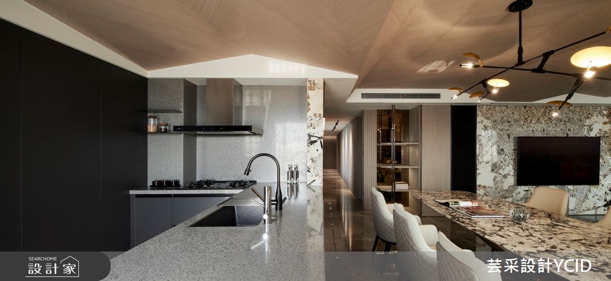由芸采創意空間設計精心規劃的85坪三房住宅空間,家庭成員一共有2位大人、1位小孩。因應屋主需求,設計師運用現代風作為主軸,搭配乳膠漆、六角磚/蜂巢磚、壁紙、超耐磨木地板、木紋磚、石英磚/拋光石英磚、鐵件、灰鏡、茶玻、鍍鈦金屬、木作貼皮、系統板材、大理石、磁磚、木百葉、軌道燈、皮革、繃布,打造全家人的夢想家居。