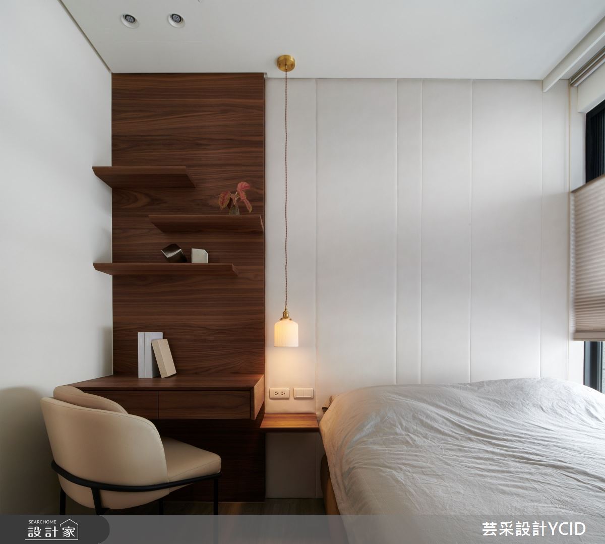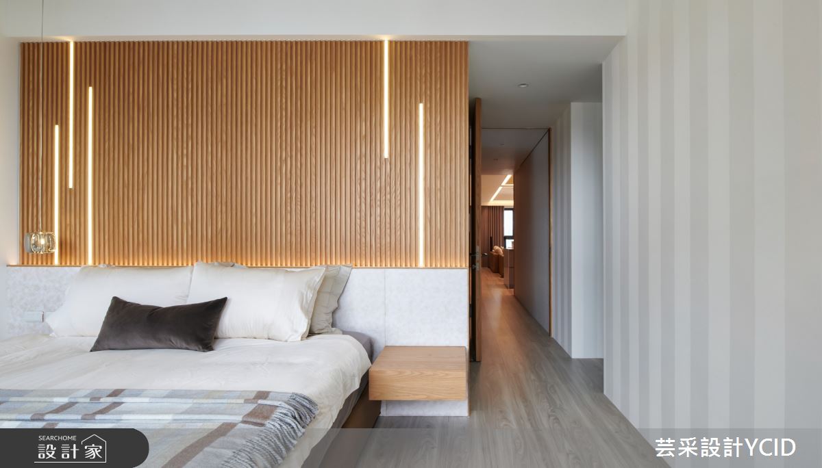 45 坪的新成屋,屋主平時喜歡旅遊,也喜歡休閒風格和溫潤的木質元素,設計師以木皮搭配天然岩板,並將客廳格局放大,擁有寬敞的空間感,讓屋主回到家,就像是度假般舒適、自在。 客、餐廳採用開放式設計,並透過半開放的廚房,一進門後便有寬闊舒適的視野,天花板特意以斜向的設計方式,降低樑柱間的高低差感受,沿著牆面向下,搭配木皮材質向下梳理的紋路,成為休閒感十足的客廳端景。餐廳處的展示層架將層板薄化,呈現出輕盈的質感,下方的中島檯面可做多功能的運用,滿足屋主辦活動,或是成為和親友的聚會空間,增加生活中的互動性。臥室則運用木質和純白的跳色變化,營造視覺上的豐富度,並賦予收納、閱讀等機能性,提升私領域的舒適感。 小編的最愛 玄關入口處的鞋櫃結合木作造型格柵,不僅僅只有美觀考量,更為鞋櫃空間保留了通風的機能性。