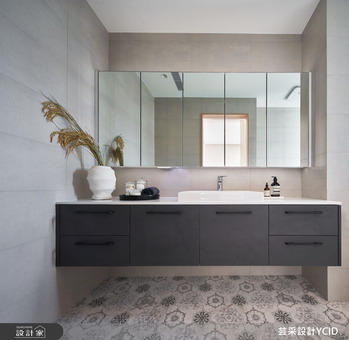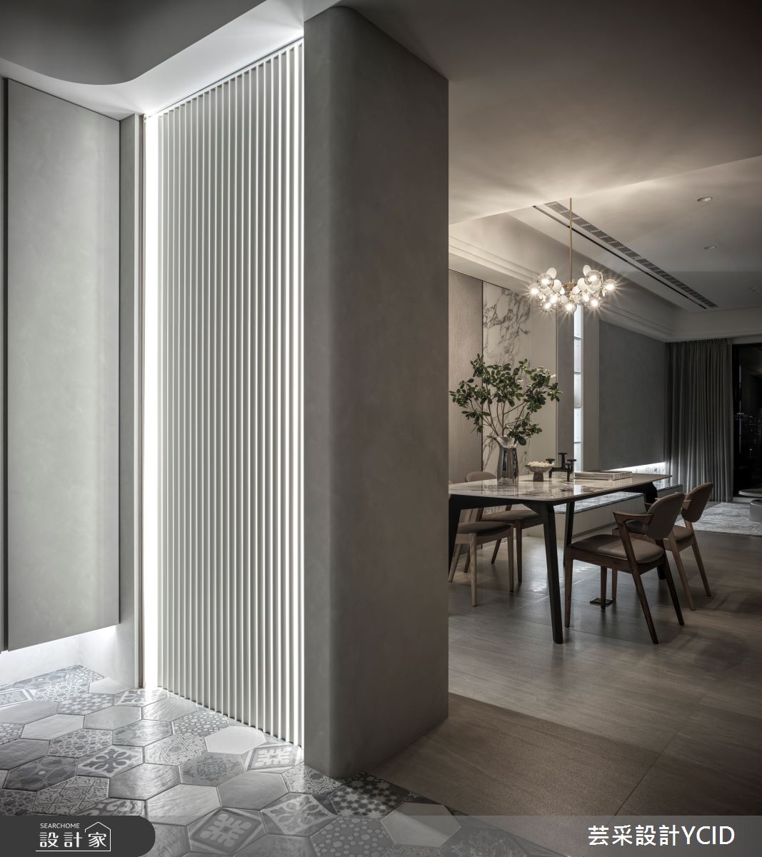 由芸采創意空間設計精心規劃的44坪三房住宅空間,家庭成員一共有2位大人、1位小孩、1位長輩。因應屋主需求,設計師運用現代風作為主軸,搭配乳膠漆、花磚、超耐磨木地板、木地板、鐵件、灰鏡、鍍鈦金屬、木作貼皮、鋼刷木皮、系統板材、大理石、木百葉、軌道燈、石材,打造全家人的夢想家居。