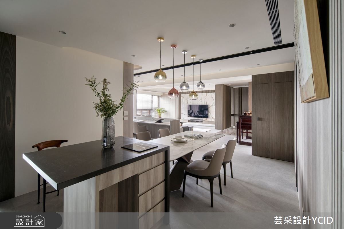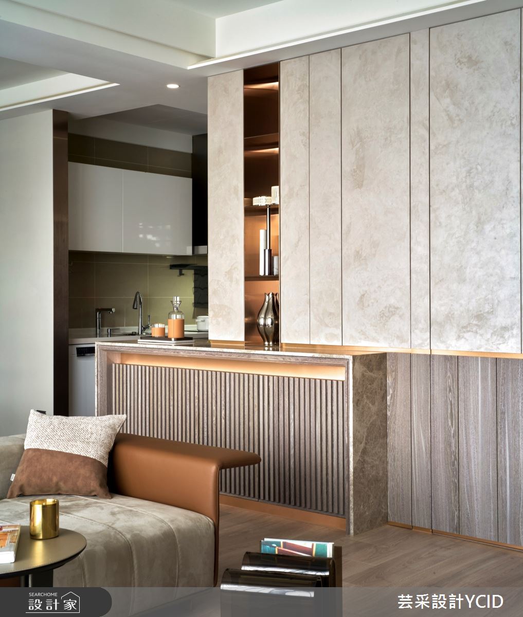 來自芸采創意空間設計的40坪混搭風住宅案,屋主一家人共有2位大人,是一間單層新成屋(5年以下)的三房格局,設計師藉由建材以乳膠漆、超耐磨木地板、石英磚/拋光石英磚、鐵件、灰鏡、鍍鈦金屬、木作貼皮、系統板材、大理石、人造石、皮革、繃布、線板、噴漆、蛇行布簾、進口薄板大磚的搭配應用,實現一家人的理想生活。