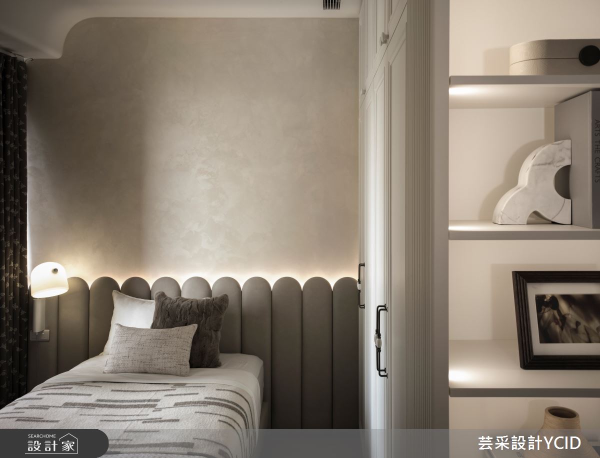 本案為芸采創意空間設計的25坪現代風新成屋(5年以下)設計作品,格局為單層三房的居住空間。全室建材的搭配,應用乳膠漆、壁紙、不鏽鋼、超耐磨木地板、鐵件、灰鏡、茶玻、鍍鈦金屬、鋼刷木皮、大理石、軌道燈、繃布,展現溫馨的居家氛圍。