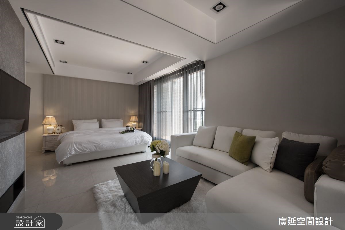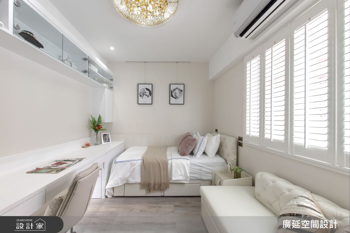 45 坪樓中樓,設計師透過新古典風格替空間定調,給予流暢簡約的線條、精緻大器的建材,並依照使用需求、量身打造每一道使用機能,完成屋主心目中的居家心願,快跟著小編一起來看看吧! 設計師承襲新古典的唯美格調,但選擇將繁複的線板語彙簡化,呈現俐落優雅的空間氣韻,以白色為底,襯出整體的淨白明亮,並於天花板勾勒漆黑的線條,營造出有如香奈兒的細緻氛圍,搭配燈光的烘托、鏡面的折射,帶出家的時尚況味;電視牆壁面則加入灰色石材,提點細膩的質感,同時採用玻璃建構隔間,維持空間穿透性,並促成採光的自然流動;加大的主臥場域,則塑出五星級精品飯店的舒適大器,具備專屬更衣間與起居小客廳,私人空間自成一格,且將男女主人的生活物品分流擺放、獨立有序,享有各自的專屬機能! 小編的最愛 設計師精準掌控預算,全方位考量住宅的「實用美觀」與「便利性」,並尊重使用者需求,結合客戶的概念與想像,讓生活場域衍生出更多的可能性!