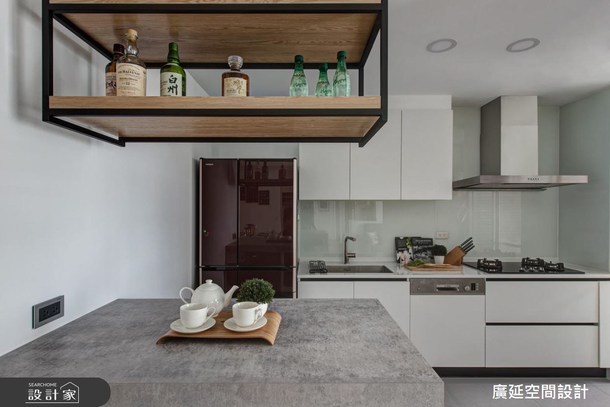 30 坪北歐風老屋用色簡約耐看,木質材料由深到淺分布於地板及收納櫃,一點鐵件、一些石材、多元變換的開放隔層、精準燈光搭配,堆疊空間立體層次。 格局規劃以開放公領域呈現,客、餐廳坐落於同一軸線上,共享同面採光,解決空間底部光照不足疑慮;餐廳收納部分開放,部分獨立的設計,抹除大量櫃體的視覺壓力,再加上鐵件建材增添個性,廊道旁牆面規劃酒櫃收納區,便於屋主收取拿放,成為空間吸睛角落;位於公領域角落的廚房,藉由鐵件與石材打造的中島吧檯營造隔間印象,開放穿透卻擁有獨立感;沙發後方獨立書房,透過玻璃特性放大空間,同時賦予閱讀、工作時所需要的安靜環境;主臥使用木質比例較高,地坪、床頭一路延伸至衣櫃,搭配一抹淺灰牆、兩盞溫馨床頭燈,塑造靜謐休息氣氛。 小編的最愛 燈光設計考量各領域機能精準安排崁燈,如吧檯鐵件懸櫃上方、搭配餐廚收納櫃及掛畫的打燈位置等,皆在明亮度及造型美學之間拿捏得宜,並透過遊走一圈的間接光線,暈染柔和生活氣息。