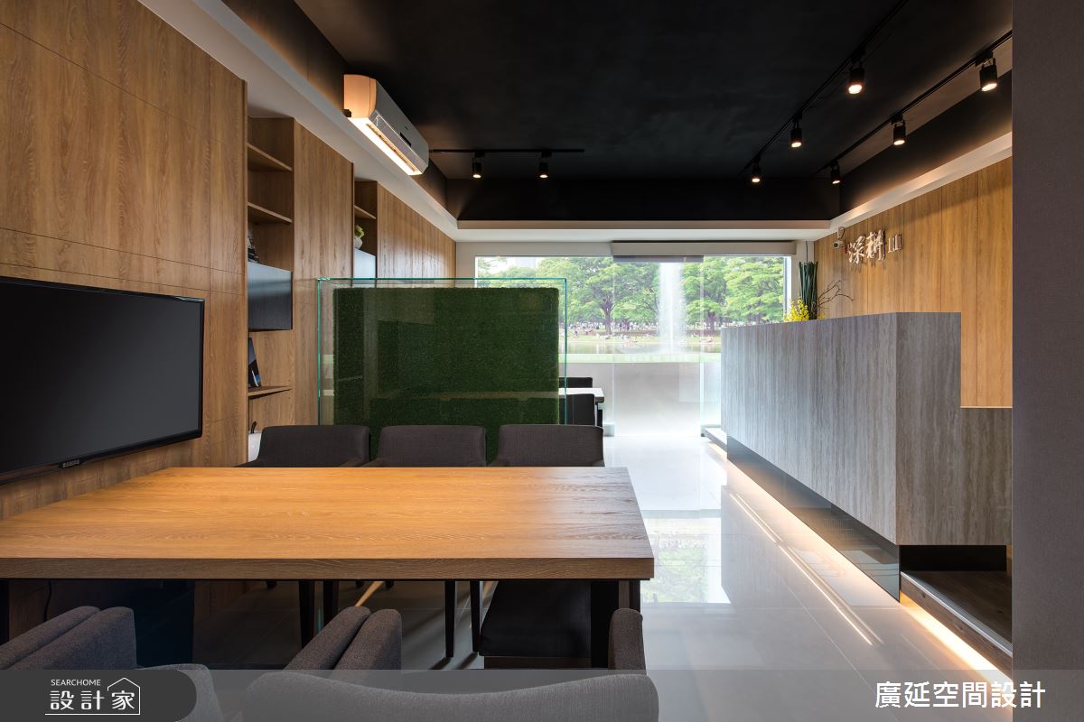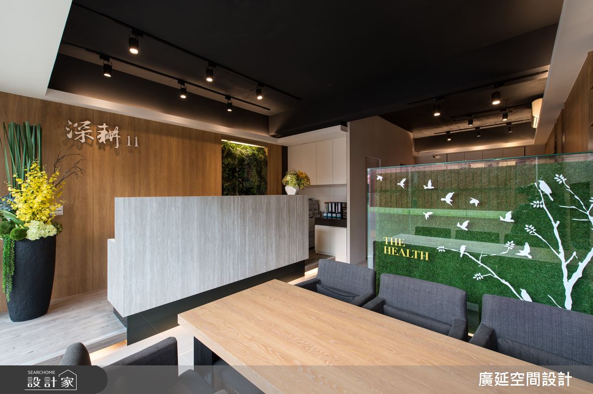 由廣延空間設計精心規劃的20坪商業空間,因應業主需求,設計師運用現代風作為主軸,搭配建材木皮、油漆、珍珠漆、烤漆、美耐板、塑膠地磚、玻璃、壁紙、鐵件、蹦布、水晶面板、人造植物,打造精緻品味的空間氛圍。