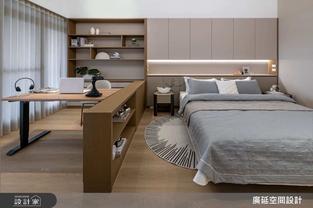 由廣延空間設計精心規劃的45坪四房住宅空間,家庭成員一共有2位大人。因應屋主需求,設計師運用現代風作為主軸,搭配舒然銘板、美耐板、鐵件、鋁件、木地板、玻璃、系統櫃、油漆,打造全家人的夢想家居。