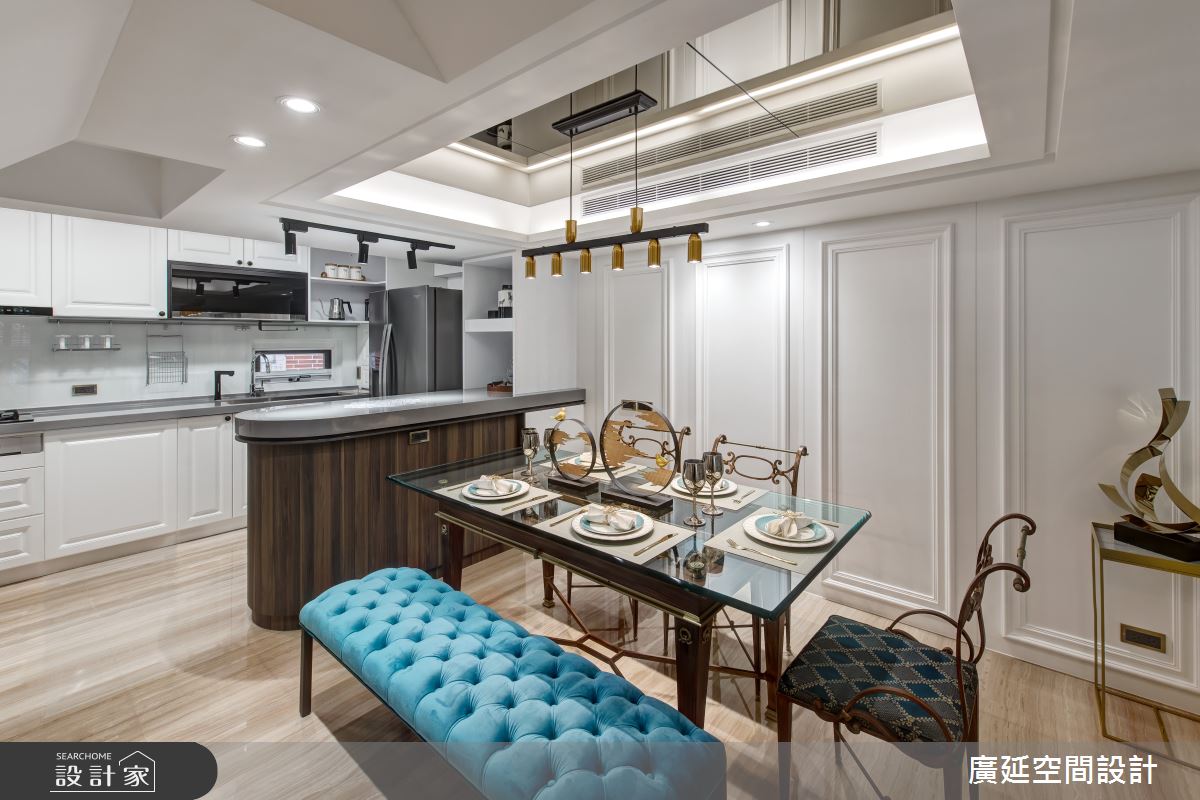 來自廣延空間設計的80坪新古典住宅案,屋主一家人共有2位大人、2位小孩,是一間透天別墅老屋(16~30年)的四房格局,設計師藉由建材以大理石、線板、百葉窗、玻璃、人造石、茶鏡、全熱交換機的搭配應用,實現一家人的理想生活。
