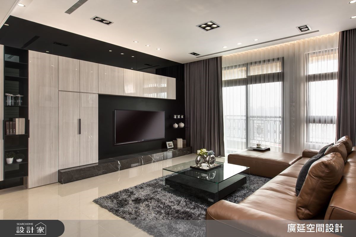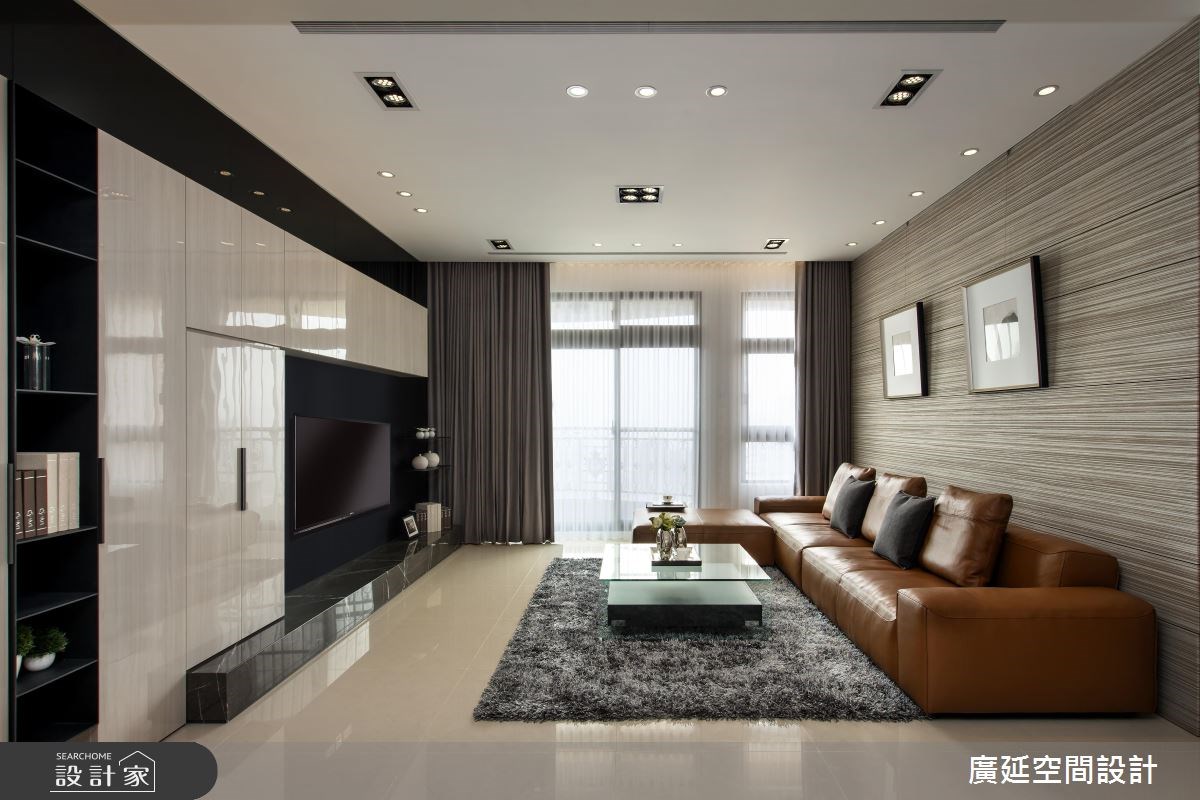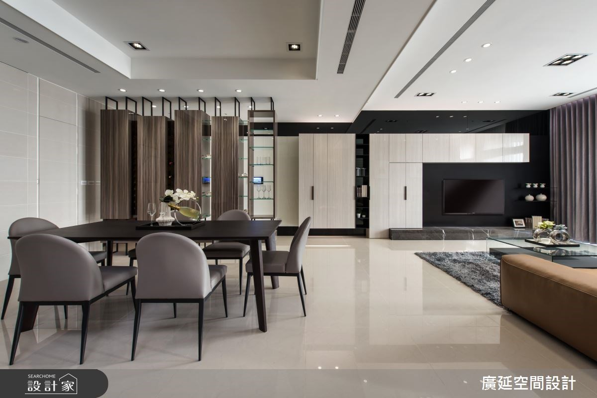 由於屋主喜歡現代簡約的居家風格,因此這間 52 坪的四口住宅,透過立面的材質分割變化,在線條的縱橫交錯、虛實之間,呈現寬敞明亮的三房兩廳格局。 室內櫃體利用烤漆的手法,放大空間尺度,營造透亮的居家氛圍。玄關選擇黑色鐵件搭配懸空的木作鞋櫃設計,並在其中嵌入紅酒架及展示空間,讓一道屏風可以兼顧餐廳與玄關的使用機能。電視牆的深底襯托收納櫃的光澤和形狀,而沙發背牆則以編織毯的鋪設,延展漸層的牆面視覺,導引前往私領域的動線。 通向臥房的廊道,藉由木格柵拉門劃分公私領域的界線,並將儲藏櫃結合於廊道的牆面中,增加室內的收納功能。臥室的床頭牆擁有垂直線條的俐落,床尾的兩扇白色拉門,型塑更衣室的順暢動線,使得光線和空氣可以自由流通。乾溼分離的浴室增設小便斗,維持了空間的整潔度。 小編的最愛 多功能室採取架高地坪的方式,替居家增加一處閱讀角落,且從地板到櫃體憑藉木質調的深淺變化,提升空間的豐沛層次。