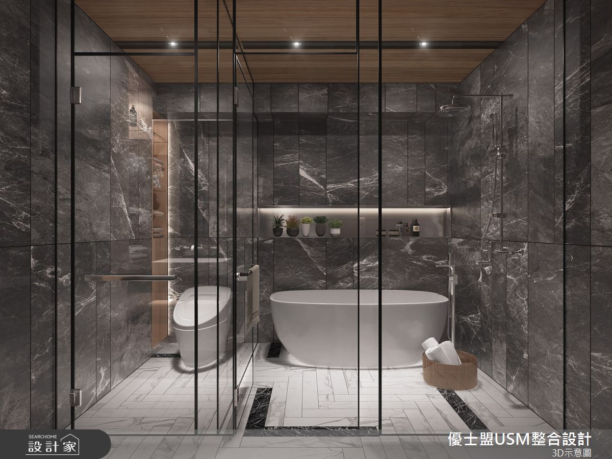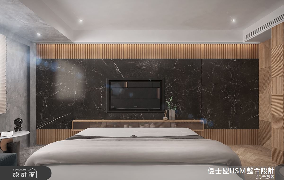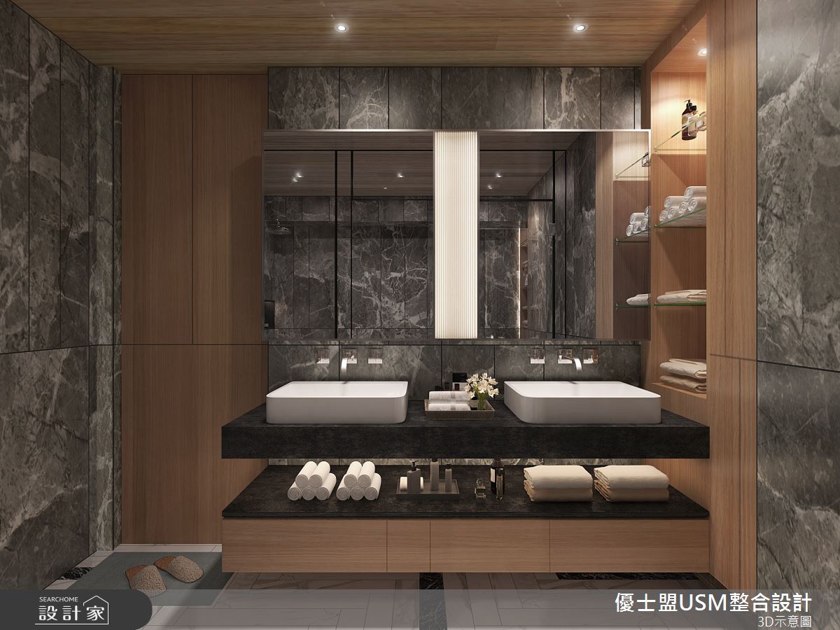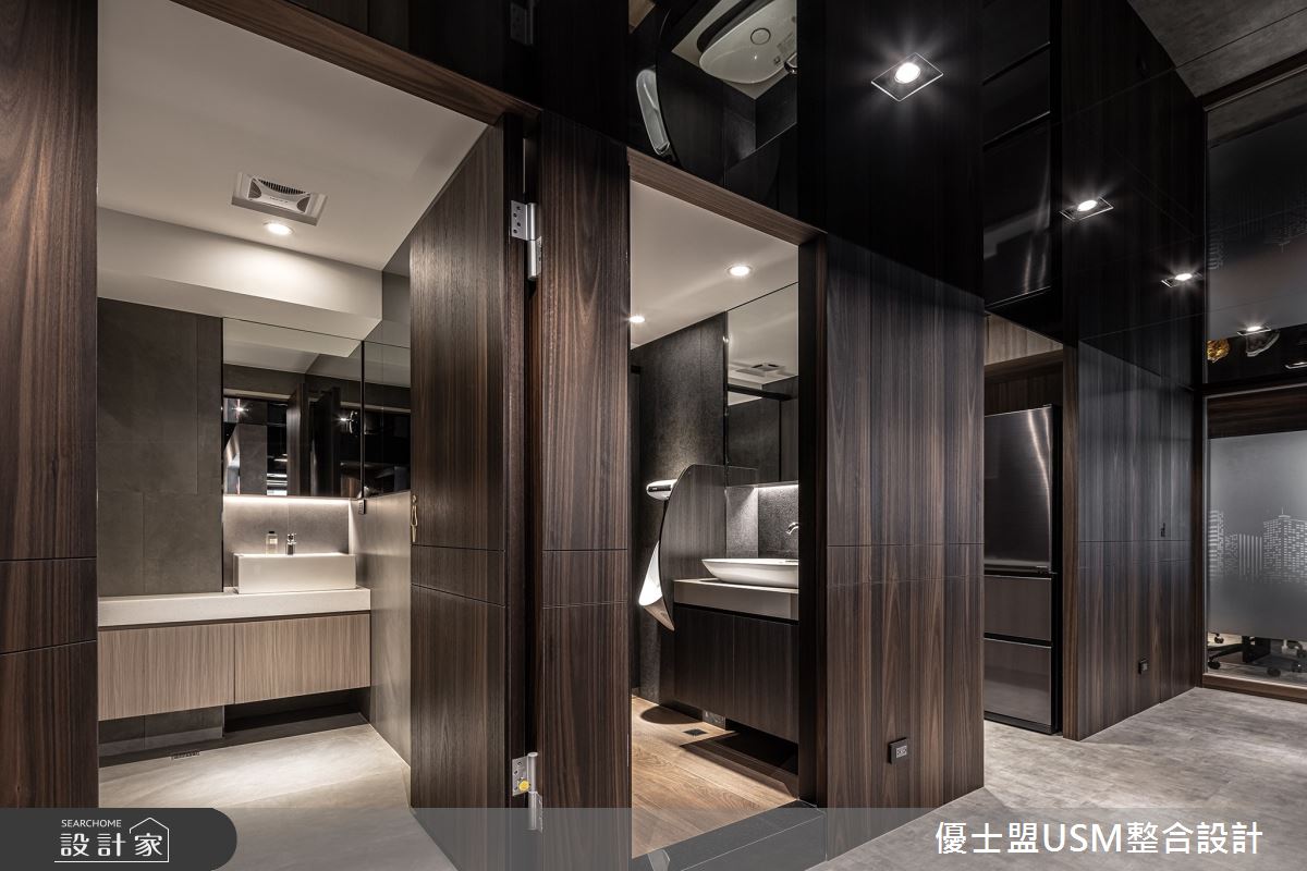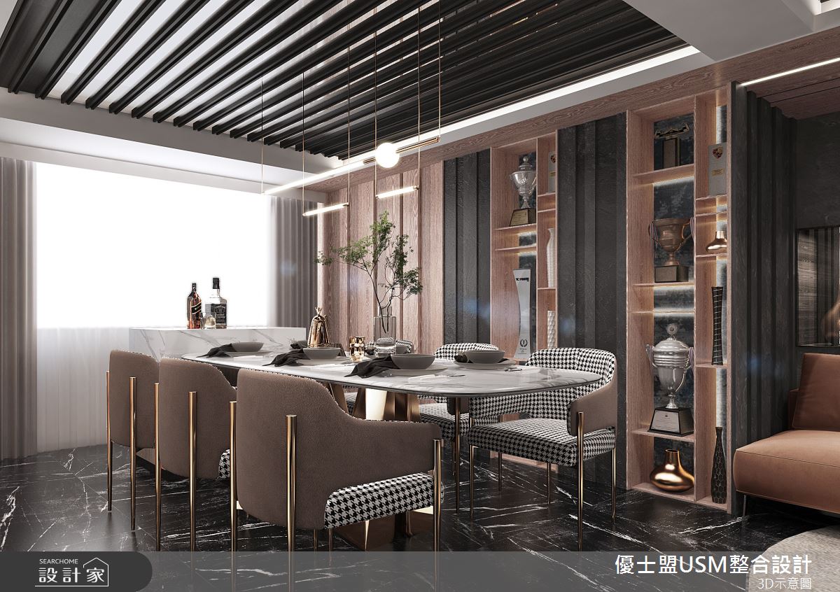 由優士盟整合設計精心規劃的80坪一房住宅空間,家庭成員一共有2位大人。因應屋主需求,設計師運用現代風作為主軸,搭配大理石、實木、鍍鈦金屬、磁磚、水磨石、特殊玻璃,打造全家人的夢想家居。