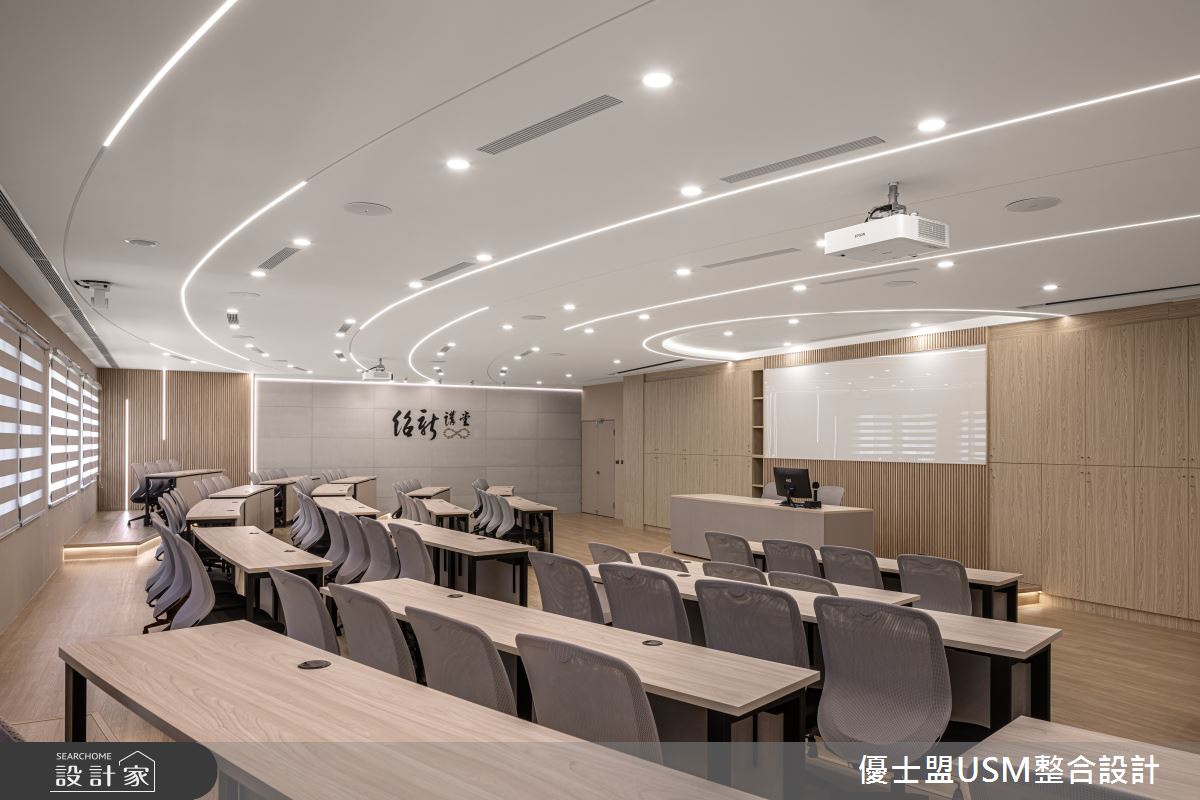 由優士盟整合設計精心規劃的65坪商業空間,因應業主需求,設計師運用北歐現代風作為主軸,搭配建材格柵、烤漆玻璃,打造精緻品味的空間氛圍。